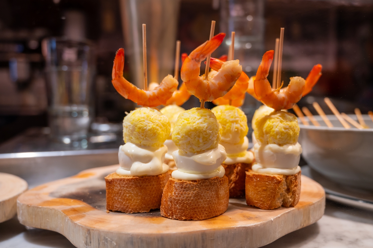 FYI: Pintxos are the Basque Country’s answer to tapas: small, flavorful creations often served on bread and spiked with a toothpick (hence the name pintxo, meaning "spike"). Think grilled prawns drizzled in garlic oil, seared foie gras with apple compote, or slow-cooked beef cheek in red wine, all paired with local wines and crisp Basque cider.