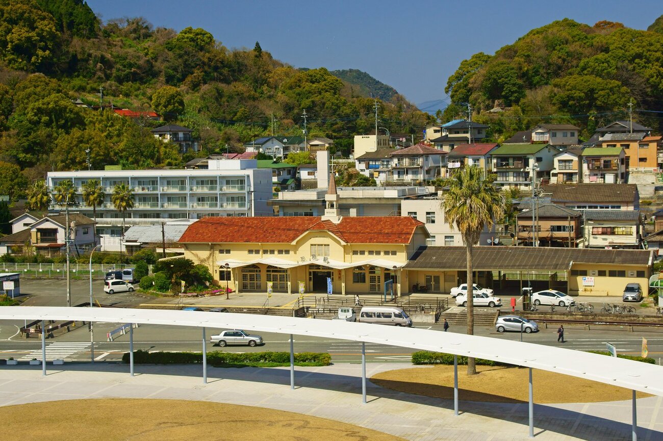 À quelques minutes d’Uto, Oda est l’une de ces petites gares modestes qui marquent la transition entre les quartiers ruraux et les anses côtières le long de la mer de Shiranui/Yatsushiro.