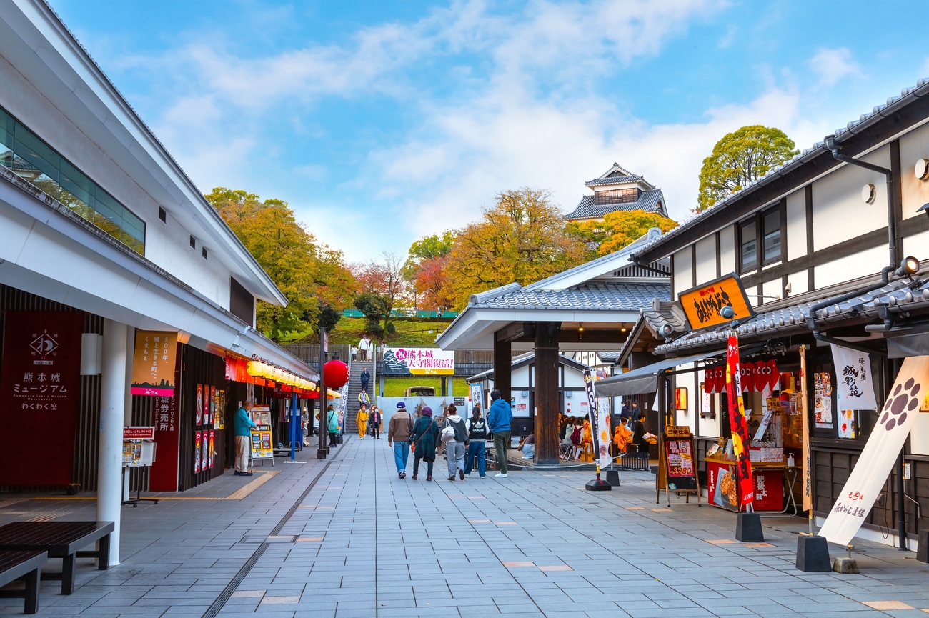 Près de la gare de Kumamoto, vous trouverez l’Amu Plaza Kumamoto, un grand centre commercial avec de nombreuses boutiques et restaurants, ainsi que le marché Higo Yoamon, où vous pourrez acheter des spécialités locales et des souvenirs. Dans le centre-ville, explorez le château de Kumamoto, Sakuranobaba Josaien, le jardin Suizenji Jojuen, et la ludique et familiale Kumamon Square.