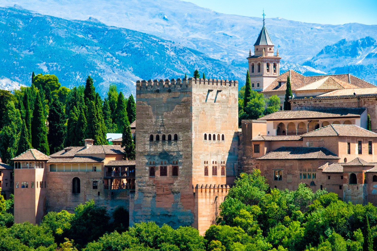 Aninhada entre as montanhas da Sierra Nevada, Granada encanta os visitantes com as suas casas caiadas e monumentos medievais da era mourisca em Espanha. O destaque absoluto é a icónica Alhambra, um deslumbrante complexo de palácios, pátios e jardins que outrora pertenceu aos emires Nasridas. Prepare-se para visitar um dos lugares mais belos do mundo, onde os Palácios Nasridas, uma verdadeira obra-prima arquitetónica, são a joia da coroa deste conjunto monumental.