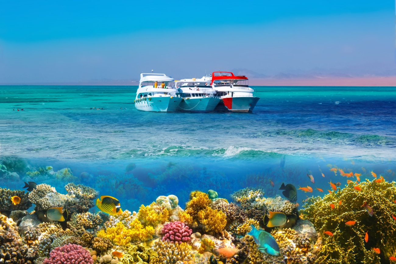Upon arrival, check into an upscale resort like Jaz Dahabeya, offering beachfront luxury and excellent amenities.