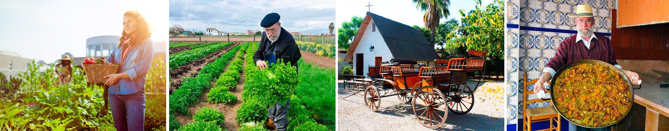 Experimente a verdadeira essência do jardim de Valência por si mesmo. Hoje terá um dia longe da agitação da cidade. Iremos levá-lo pelos jardins de uma quinta valenciana, onde poderá desfrutar de um passeio de carruagem tradicional e verá o chef local preparar ingredientes frescos e cozinhar a mais genuína paella valenciana! Prepare os seus sentidos para o que será posto na mesa: uma grande variedade de pratos típicos, desde a Paella às deliciosas sobremesas, doces valencianos com café e vinho mistela! Temos a certeza que passará um dia maravilhoso no campo, vivendo várias experiências originais, divertidas e enriquecedoras nas quintas valencianas!
