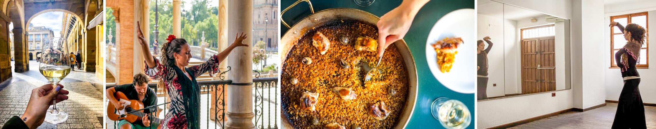 A vida pulsante nas ruas de Sevilha é palpável e este passeio leva-o diretamente até ao melhor da cultura e comida da cidade! Acreditamos que visitar Sevilha sem "avistar" o flamenco enquanto estiver por lá, não seria a mesma coisa. Vamos levá-lo ao bairro mais popular de Sevilha, Triana, onde ficará imerso na cena flamenca e aprenderá tudo sobre os segredos por trás dos seus movimentos. Em vez de espetáculos turísticos, levamo-lo aos bastidores, para um workshop em que pode experimentar e dançar no seu melhor, no bairro onde o flamenco nasceu! Esteja pronto para o seu "Olé!!" espanhol e, no final, para desfrutar de um tradicional Espetáculo de Flamenco e de um aperitivo para acompanhar e ainda três paragens nos melhores lugares de tapas de Triana!