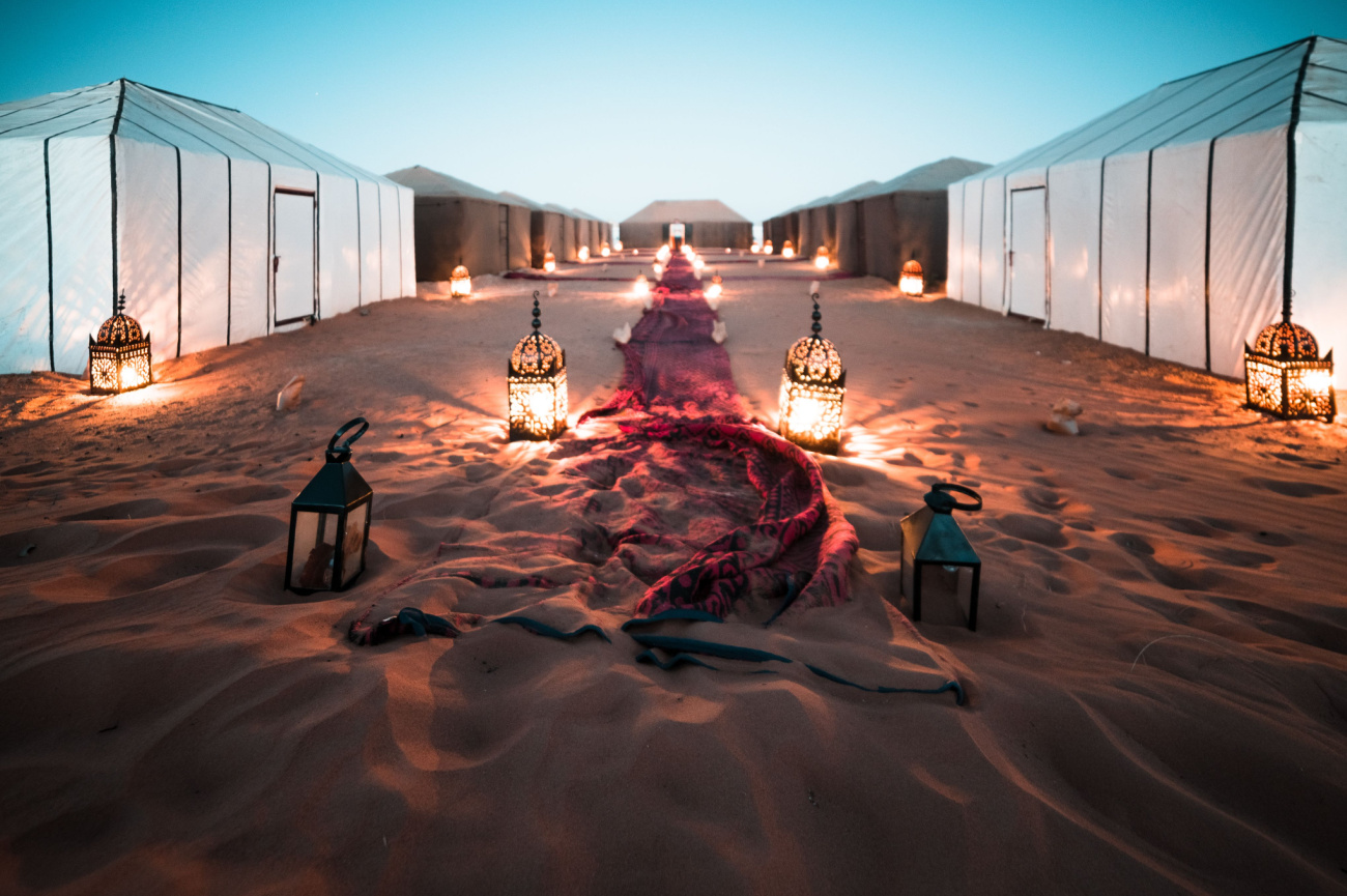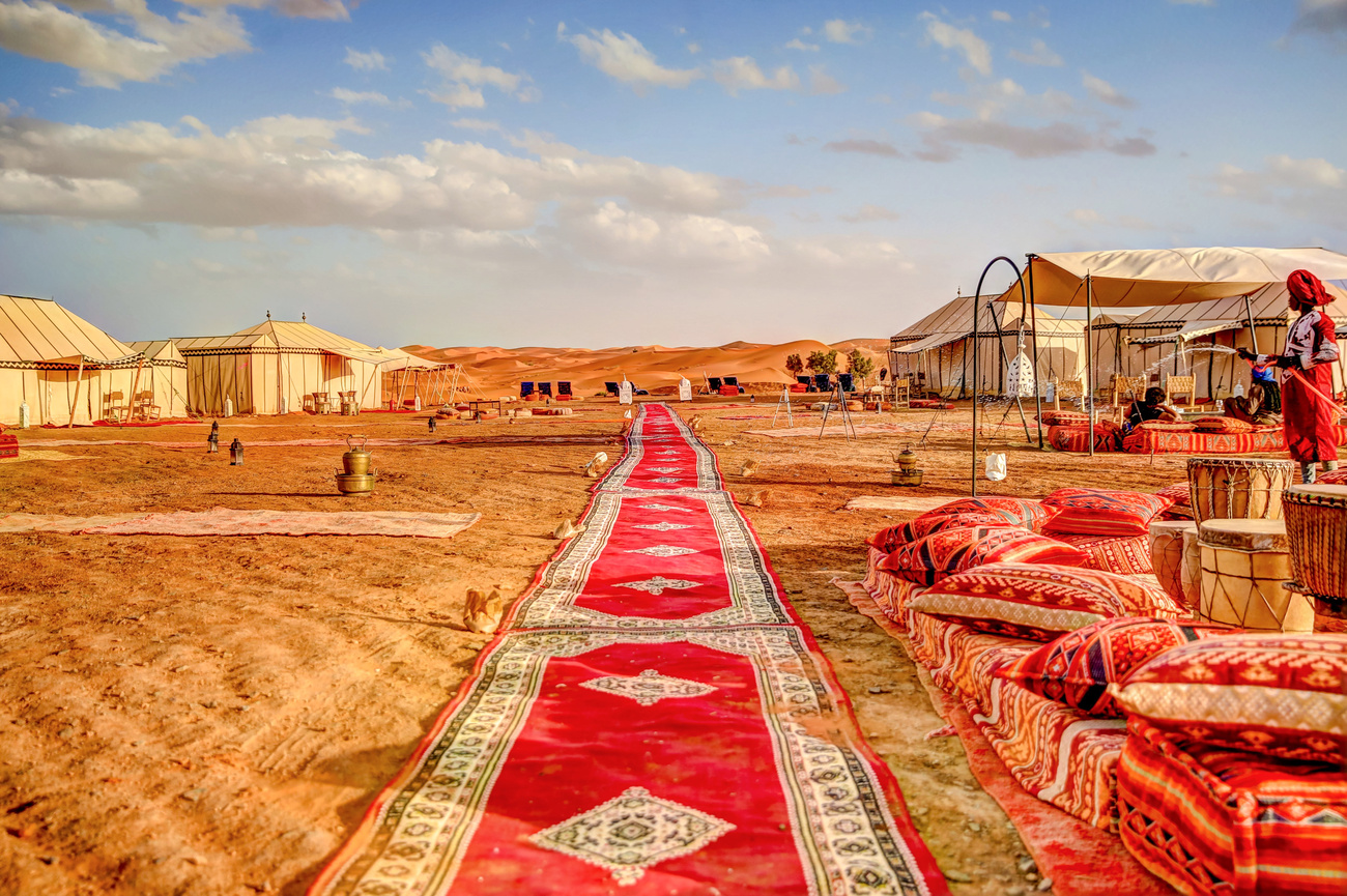 Aventura no Deserto de Merzouga O próximo dia reserva-lhe uma experiência inesquecível. Atravesse as dunas douradas do deserto de Merzouga num passeio de camelo, sentindo a magia deste cenário único. À noite, será recebido num acampamento berbere tradicional, onde desfrutará de um jantar autêntico sob um céu estrelado, acompanhado de música e entretenimento local. Depois de um dia repleto de aventura, a tranquilidade do deserto e a hospitalidade berbere tornarão esta experiência uma memória para a vida toda.