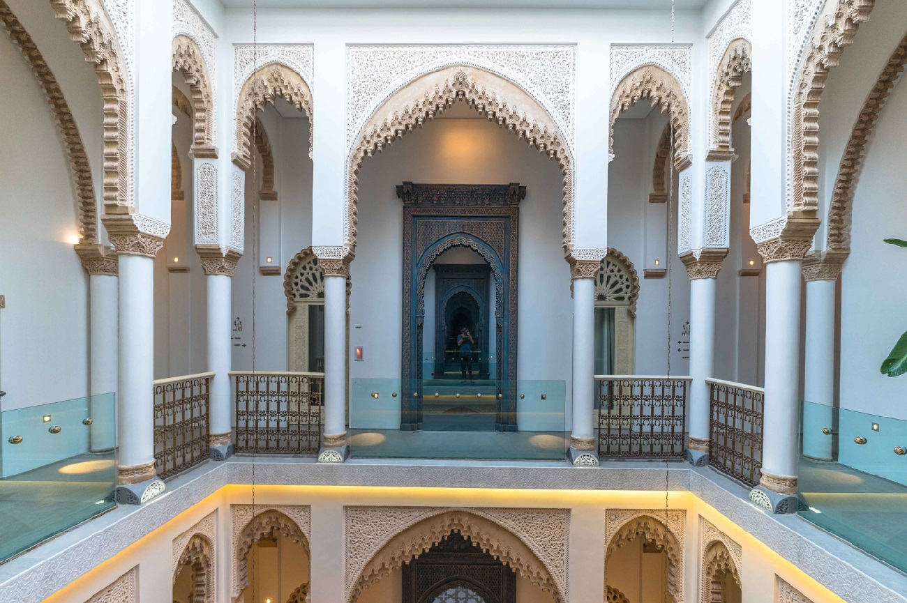 Siguiendo la tradición, un palacio del siglo XIV ha sido restaurado para dar vida al Ryad Fès. Su elegante patio andalusí, sus exuberantes jardines, su terraza panorámica y su piscina crean un ambiente mágico que evoca el encanto de Las Mil y Una Noches, haciendo de su estancia en Fez una experiencia inolvidable.