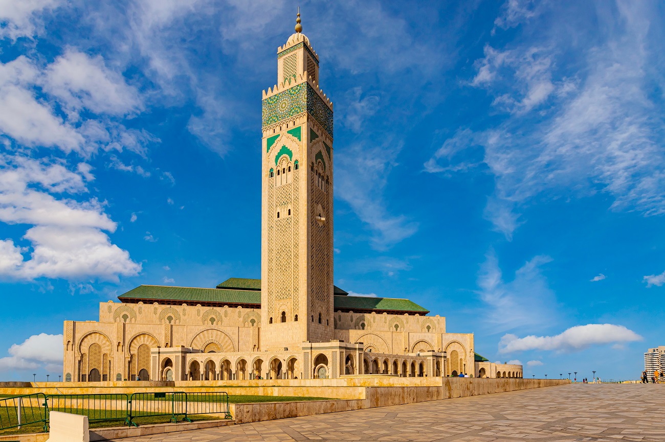 Su primera parada será en la impresionante Mezquita Hassan II, famosa por tener el minarete más alto del mundo. Luego, pasee por la elegante Corniche de Ain Diab, un lugar de ambiente exclusivo, donde la modernidad se mezcla con las impresionantes vistas al océano. No es de extrañar que este enclave atraiga a una clientela tan sofisticada.