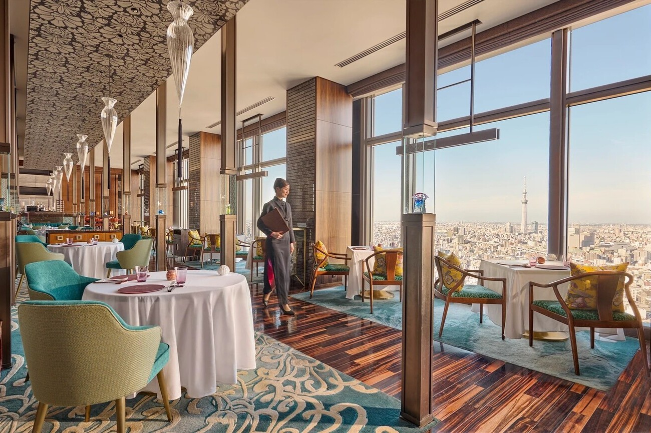 The Mandarin Oriental, Tokyo occupies a commanding presence in the historic Nihonbashi district, poised atop the Nihonbashi Mitsui Tower (floors 30–36). Designed by renowned architect Cesar Pelli, the hotel embodies a thoughtful “Woods and Water” design concept with spaces framed to reflect the harmony between nature and the metropolis: like a living tree with guestrooms as branches.