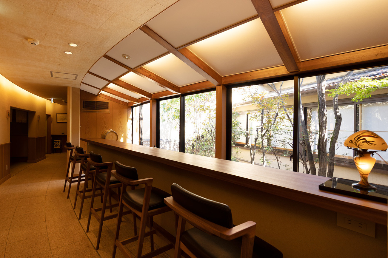 Car 4 is the communal lounge, open to all passengers. It features a beautiful arched ceiling with intricate latticework, known as "Okawa kumiko," a traditional technique from Fukuoka. Here, you can chill and relax at the tables or window counters, or maybe chat with your fellow passengers while enjoying the passing Kyushu scenery.