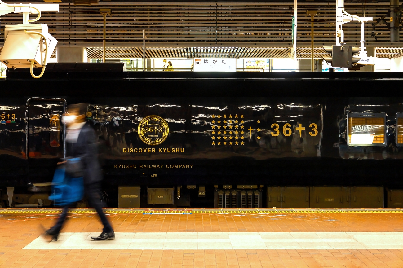 The name represents Kyushu, the world’s 36th-largest island, and the ‘+3’ stands for the passengers, locals, and JR Kyushu—together symbolising gratitude, as 36+3 equals 39 ('san-kyu'), meaning 'thank you' in Japanese.