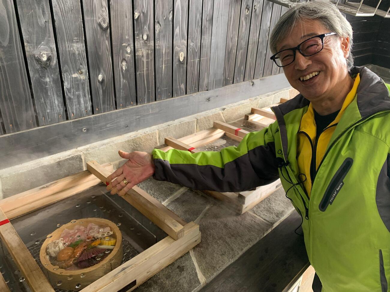 At Osumi-Okawara Station, visit Takamori Café and Sueyoshi Seicha Kobo, where locals from Soo City welcome you with fresh gibier (game meat) burgers, homemade sweets, and freshly brewed tea made with local ingredients.