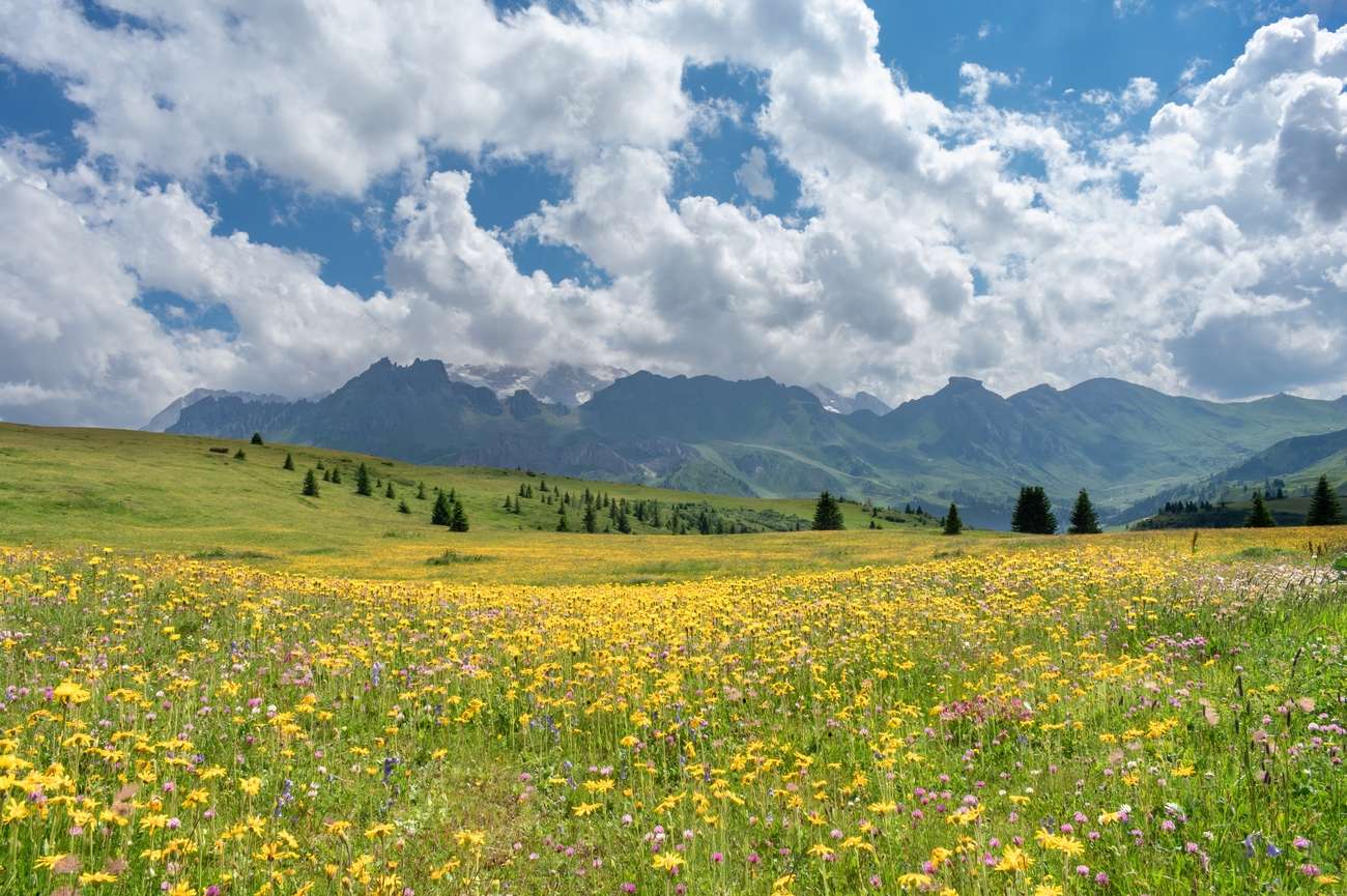 Далее начнётся неспешный поход по плато Пралонья — альпийскому лугу с круговой панорамой на пик Пиц Контуринес и ледник горы Мармолада. Маршрут лёгкий и подходит для любого уровня подготовки. Длина тропы — от 8 до 10 км, продолжительность — около 3,5–4 часов с остановками. Гид познакомит вас с флорой региона, геологией и легендами ладинского народа, делая каждую остановку частью увлекательного рассказа.
