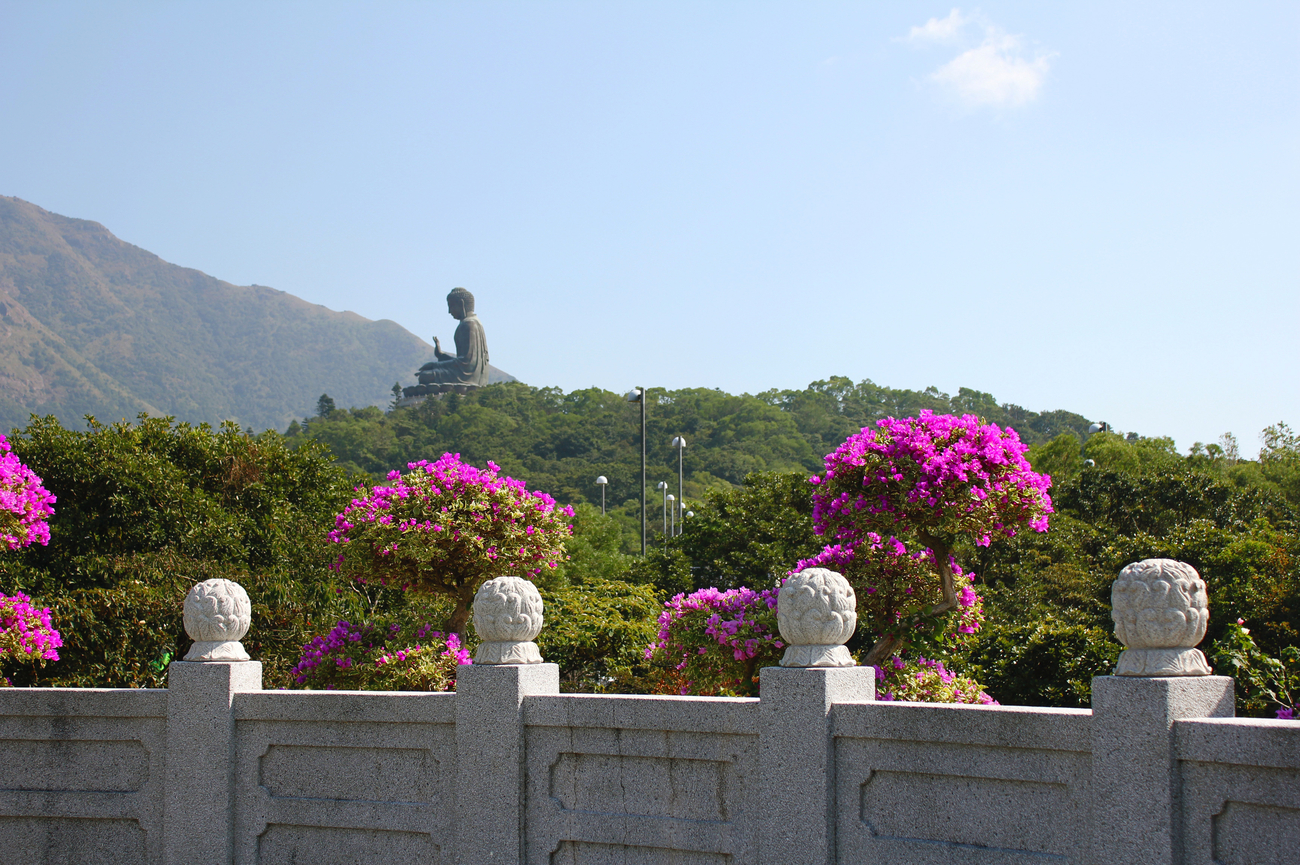 Канатная дорога открывается в 10:00 в будние дни и в 9:00 по выходным. Первый рейс всегда самый спокойный. К 11:00 организованные группы из городских отелей начинают прибывать в значительно большем количестве. К полудню в выходной день в октябре часто уже образуется очередь к 268 ступеням, ведущим к основанию платформы Будды.