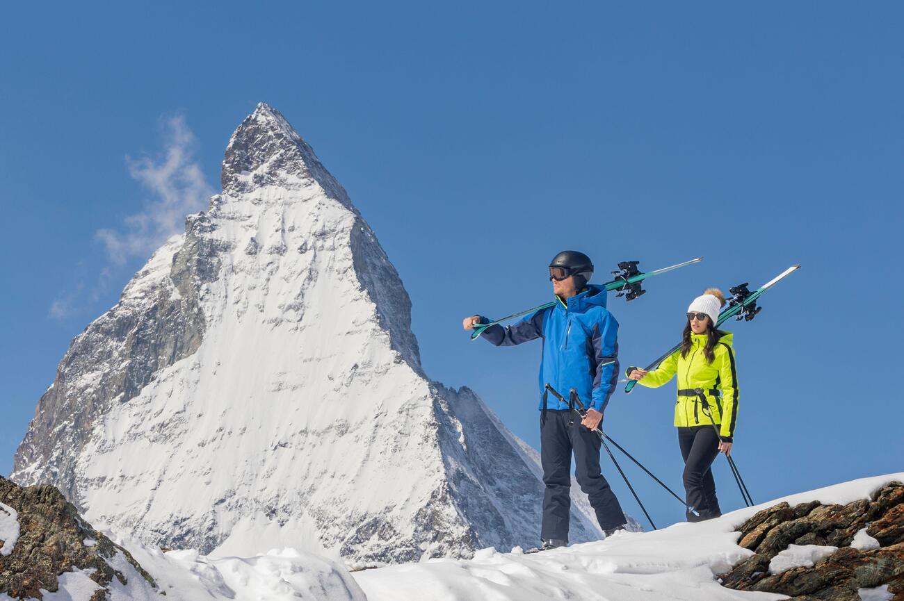 Ski days for two, spa time with Matterhorn views, a Glacier Express ride, fondue evenings, village ice skating, Valais wine tastings, and a Matterhorn sunrise.