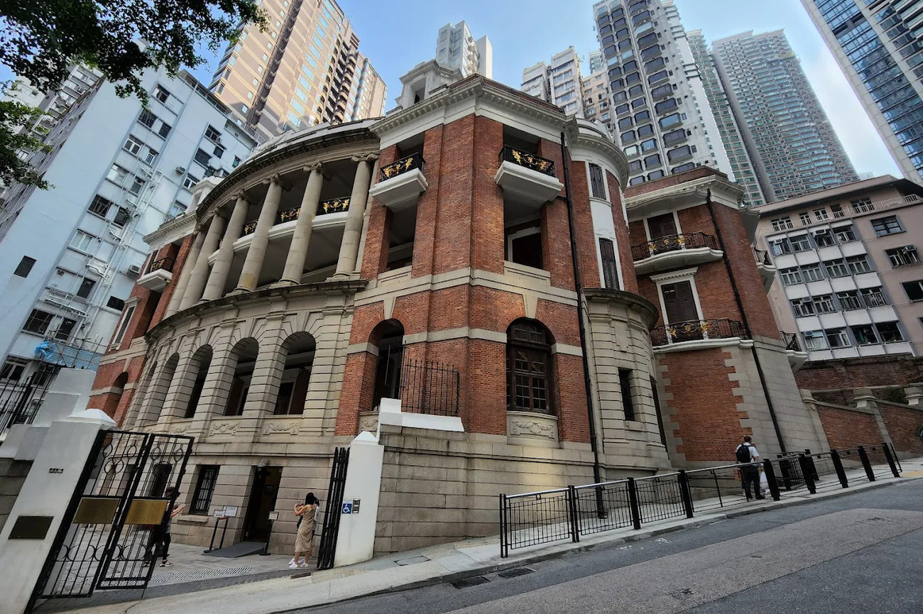 At 7 Castle Road in the Mid-Levels, a short walk from the Hollywood Road antique corridor, Kom Tong Hall stands behind granite columns with the quiet authority of a building that has lived several different lives and outlasted each of them.