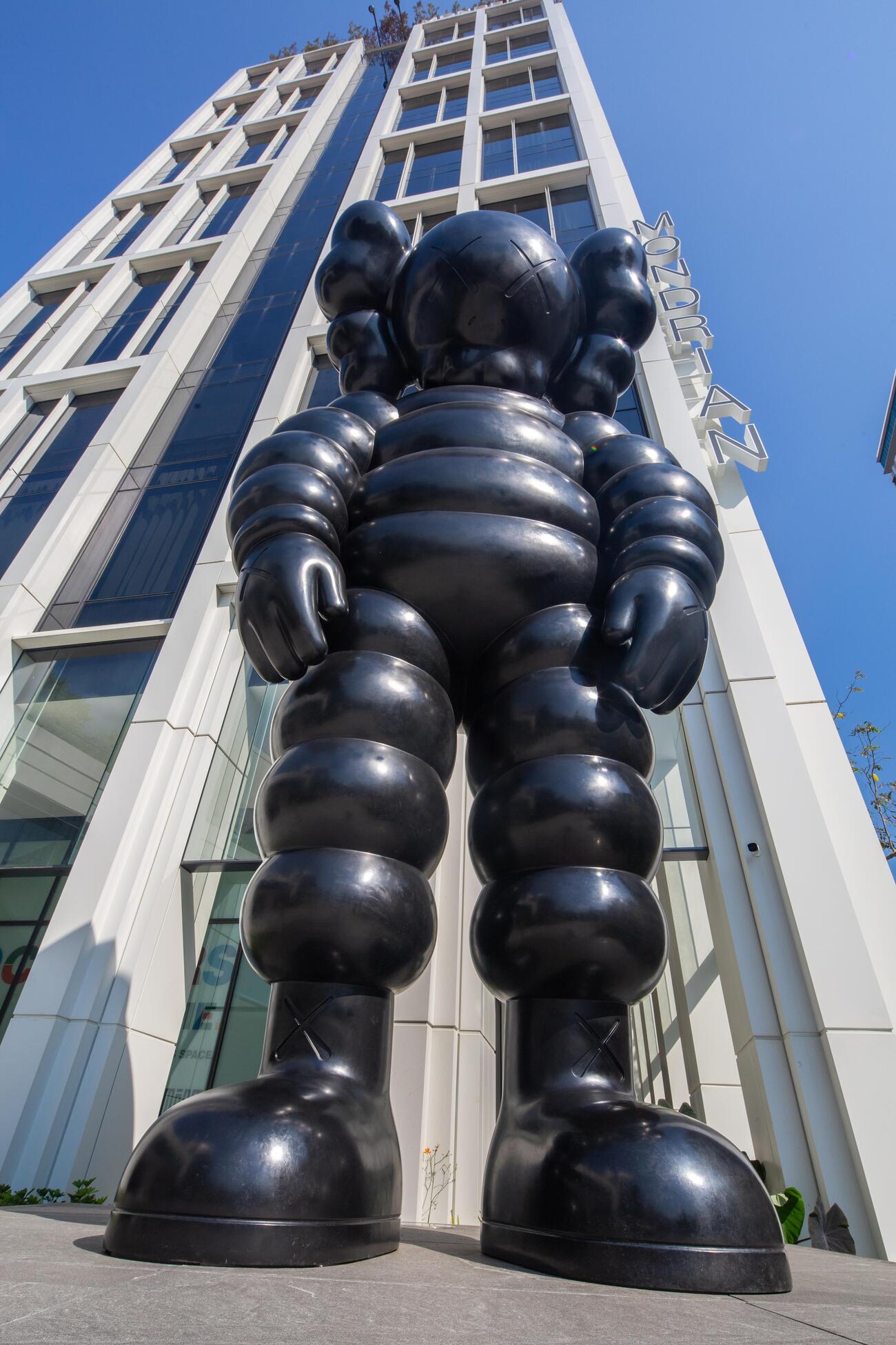 The Mondrian at 28 Duxton Road holds a permanent contemporary art collection strong enough to merit attention beyond any temporary Art Week activation. KAWS’s six-metre bronze WHAT PARTY stands at the entrance. Inside are works including Tracey Emin’s I Longed For You, Ian Davenport’s Deep Magenta Mirrored, and Dawn Ng’s Waterfall Series, installed throughout the hotel’s public spaces.