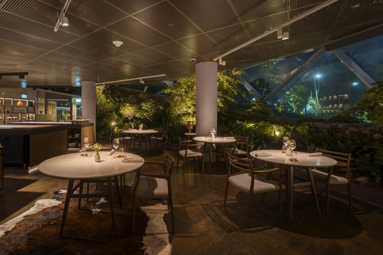 Marguerite, the Michelin-starred restaurant set at the edge of the Flower Dome, extends this experience rather than interrupting it. Chef Michael Wilson’s menu is precise, seasonal, and highly considered, but the setting is what makes the meal relevant within a wellness context.