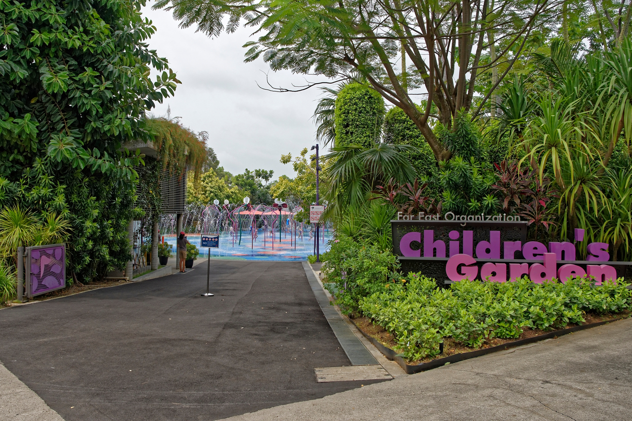 The Far East Organization Children's Garden is free, sits within the outdoor grounds, and has a dedicated water play zone, garden trail, and outdoor activity structures. Best suited to children aged two to twelve. A change of clothes is worth packing if the water play is part of the day — the zone is genuinely wet.
