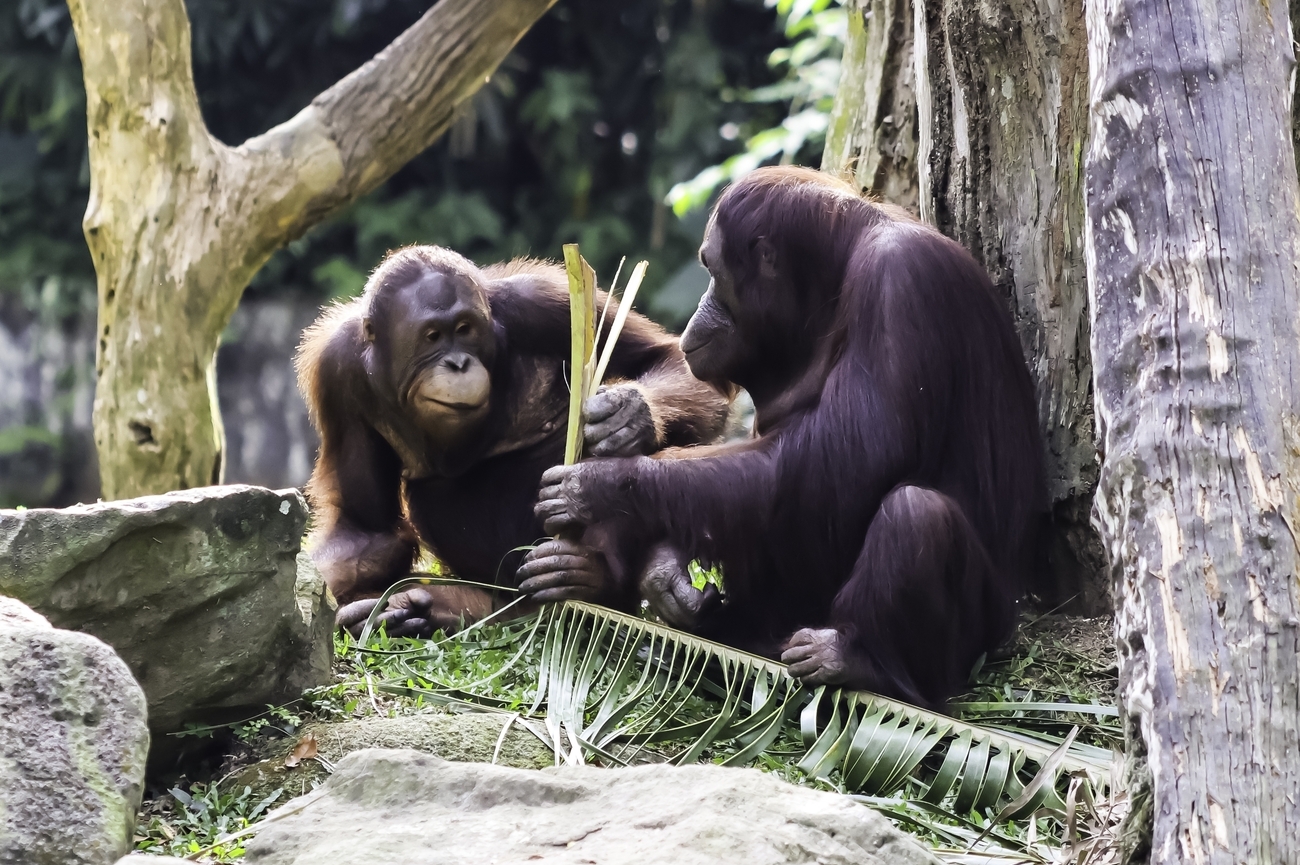 Singapore Zoo operates on an open-concept design: moated enclosures, naturalistic habitats, free-ranging animals in shared spaces with visitors. There are no conventional cages. Free-ranging orangutans move through the forest canopy above the pathways. Proboscis monkeys occupy elevated zones visible from multiple points across the park. Over 4,200 animals across 300 species, across 28 hectares.