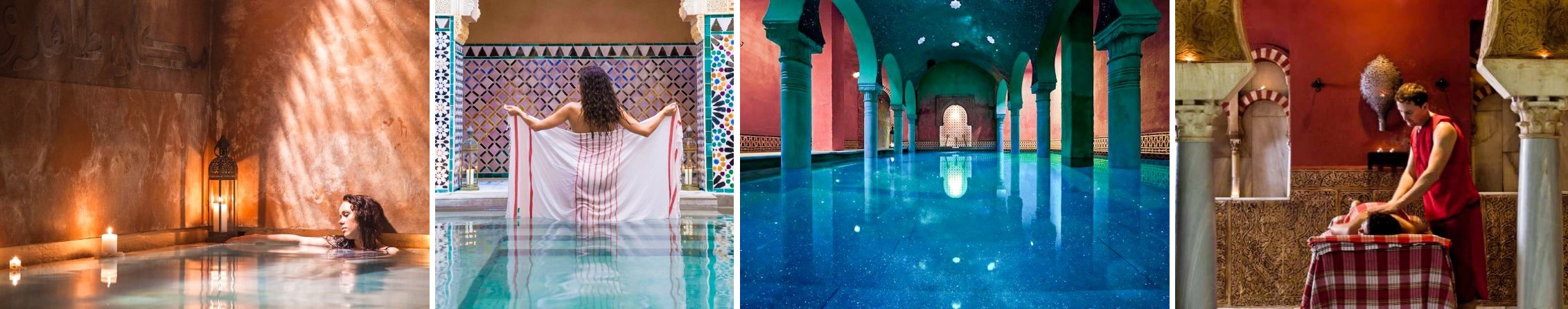 Стремясь быть вашими проводниками в этом непрерывном и оздоровительном путешествии в Гранаде, мы приглашаем вас открыть для себя типичные сеансы арабской бани, которые нацелены на обеспечение состояния спокойствия и безмятежности, необходимое для соединения с собой в довольно декадентской и уникальной обстановке. Мы гарантируем удовольствие и расслабление, которые после ухода за телом и пробуждения чувств, являются дверями к внутреннему равновесию. Мы запланировали арабскую баню MIDRA 60', которая состоит из водной процедуры продолжительностью в час, полной безмятежности и нежности. Традиционная Kessa 15' - полный ритуал с очищением на столе с горячими камнями и расслабляющий массаж 30' - эксклюзивный массаж с использованием эфирных масел, являющихся ароматом хаммама.