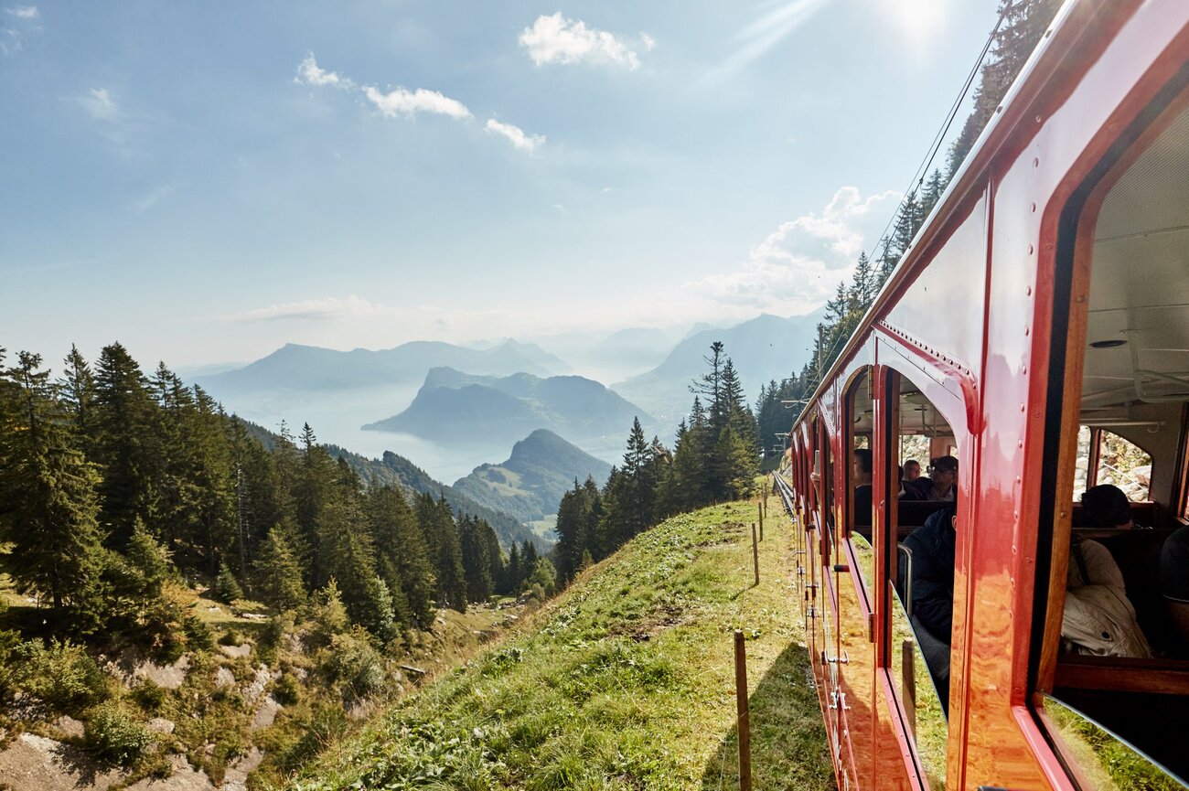 Mount Pilatus Day Trip for Couples: Ride the world’s steepest cogwheel railway to Mount Pilatus, lunch with panoramic views, cableway descent, afternoon spa relaxation, dinner at Old Swiss House.