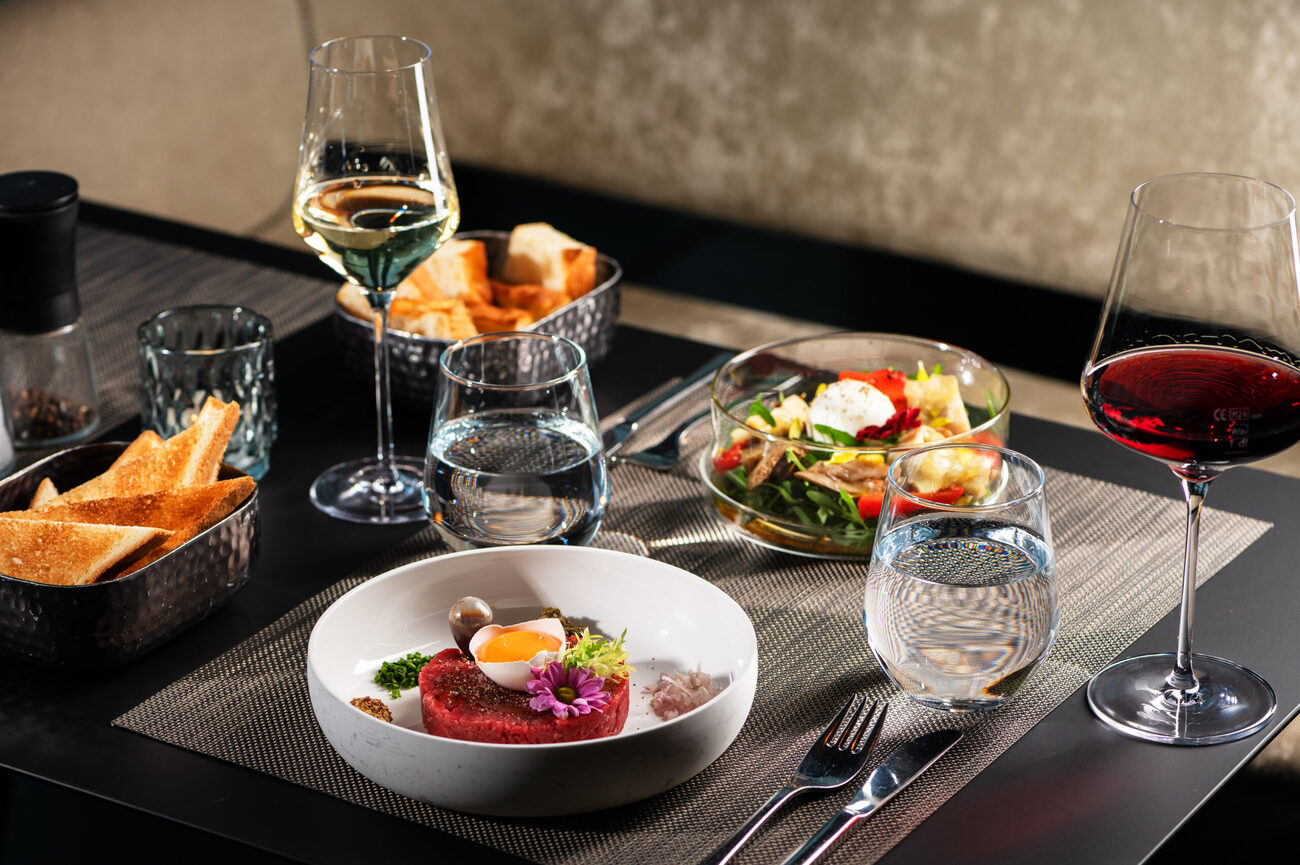 Dinner is just downstairs at the Montreux Jazz Café, a refined space that pays tribute to the legendary festival born in this town. The menu blends brasserie-style comfort with Swiss precision; think beef tartare or grilled lake fish. Wine is local and well-curated, and the setting comes alive with soft lighting and live jazz performances. After the meal, return to your suite and leave the balcony doors slightly open. The lake is quiet at night, and Montreux hums with stillness.