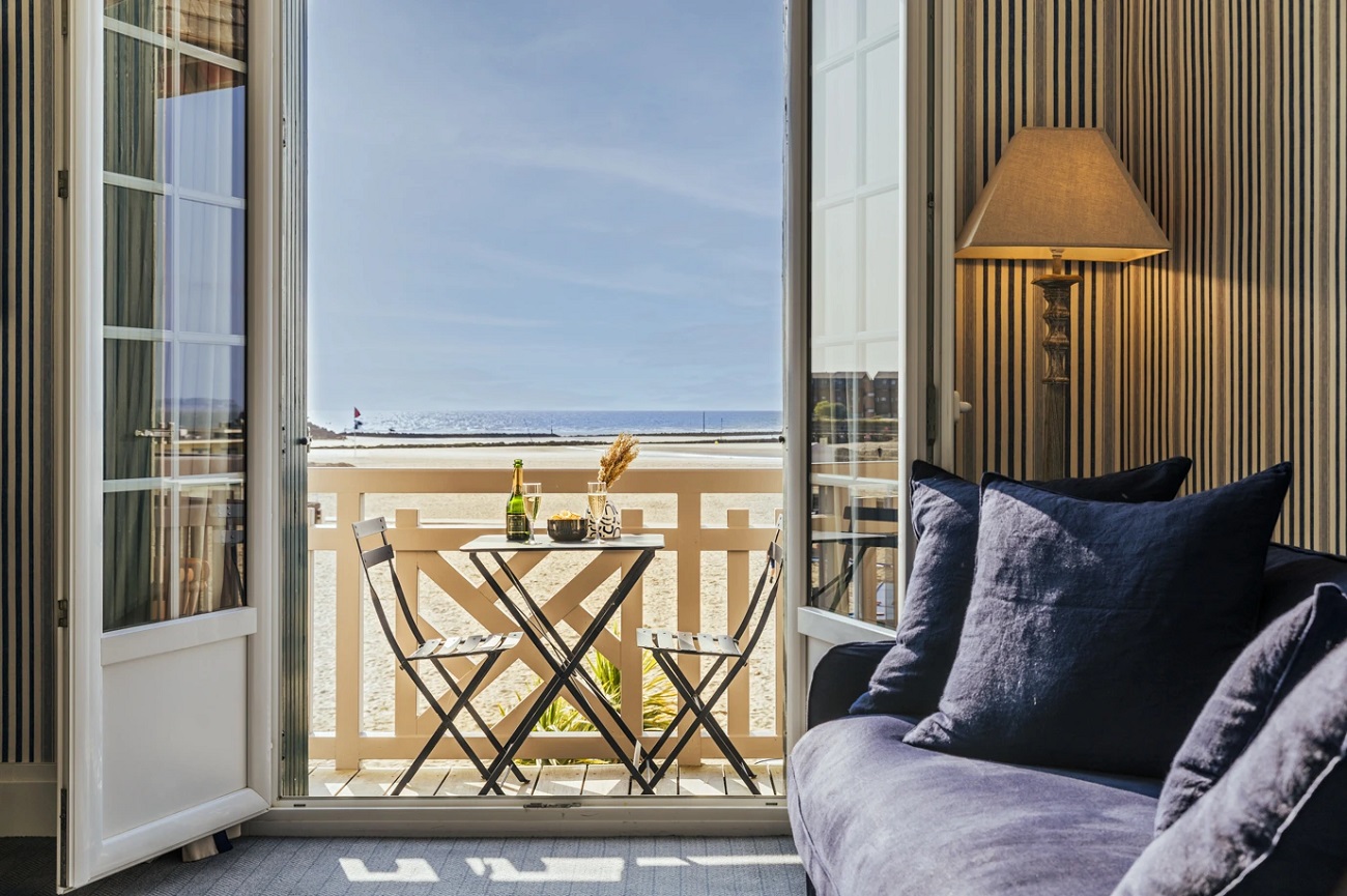 Standing beneath the half-timbered walls of your hotel, as close as possible to the immensity of the sea, is a feeling that can only be found here in Trouville. Built in 1936, the neo-Norman style blends perfectly with the coastline, becoming one of its emblems. With its feet almost in the water, Le Flaubert welcomes you to a freshly redecorated residence inviting you to pause, contemplate, and explore.