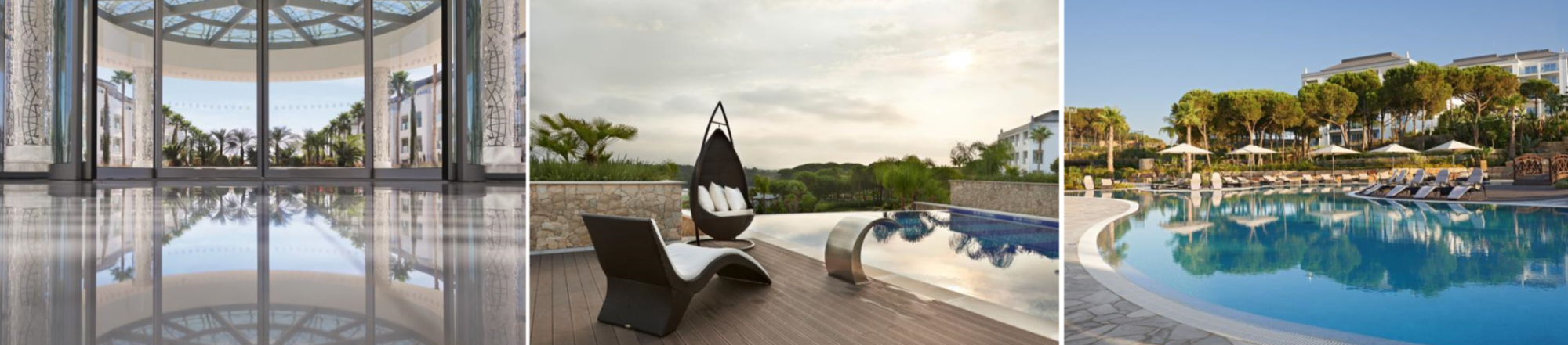 After a short drive to Quinta do Lago, follow the flaming torch-lined alley and arrive at the stunning Conrad Algarve. This luxurious hotel, modelled on an 18th-century Portuguese palace, features exquisite marble architecture and striking Moorish-inspired interior designs that beautifully emphasise the elements of light, fire, and water.