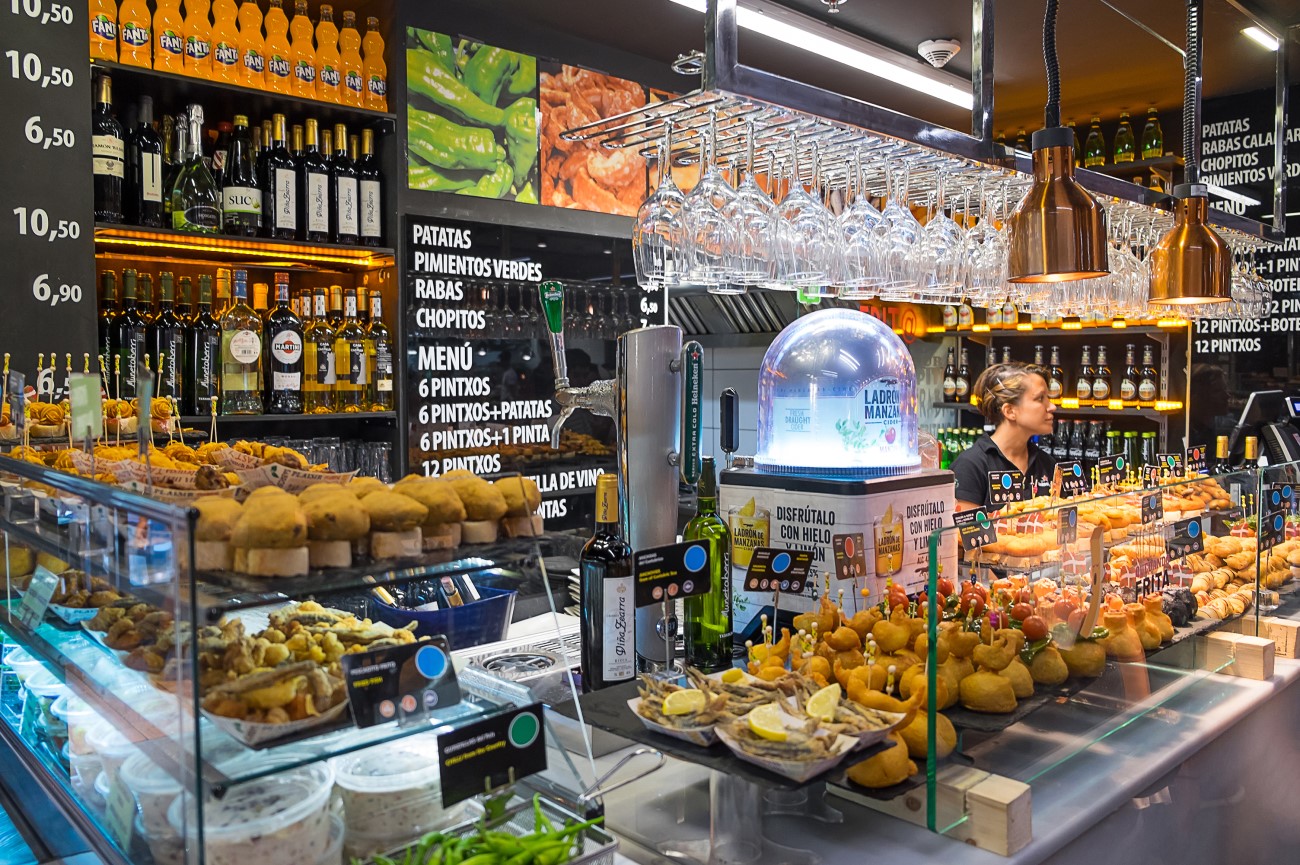 Haz una pausa para comer en el Mercado de la Ribera. Situado al borde del casco antiguo y del río, es el lugar perfecto para degustar la gastronomía de Bilbao. El edificio que se ve hoy es del siglo XX, pero ocupa el sitio del antiguo mercado de la ciudad, que data del siglo XIV. Es uno de los mayores mercados cubiertos de Europa, con más de 10.000 metros cuadrados. En su interior, encontrarás numerosos puestos de productos locales, junto a bares y restaurantes donde podrá pedir unos pintxos (Tapas Vascas).