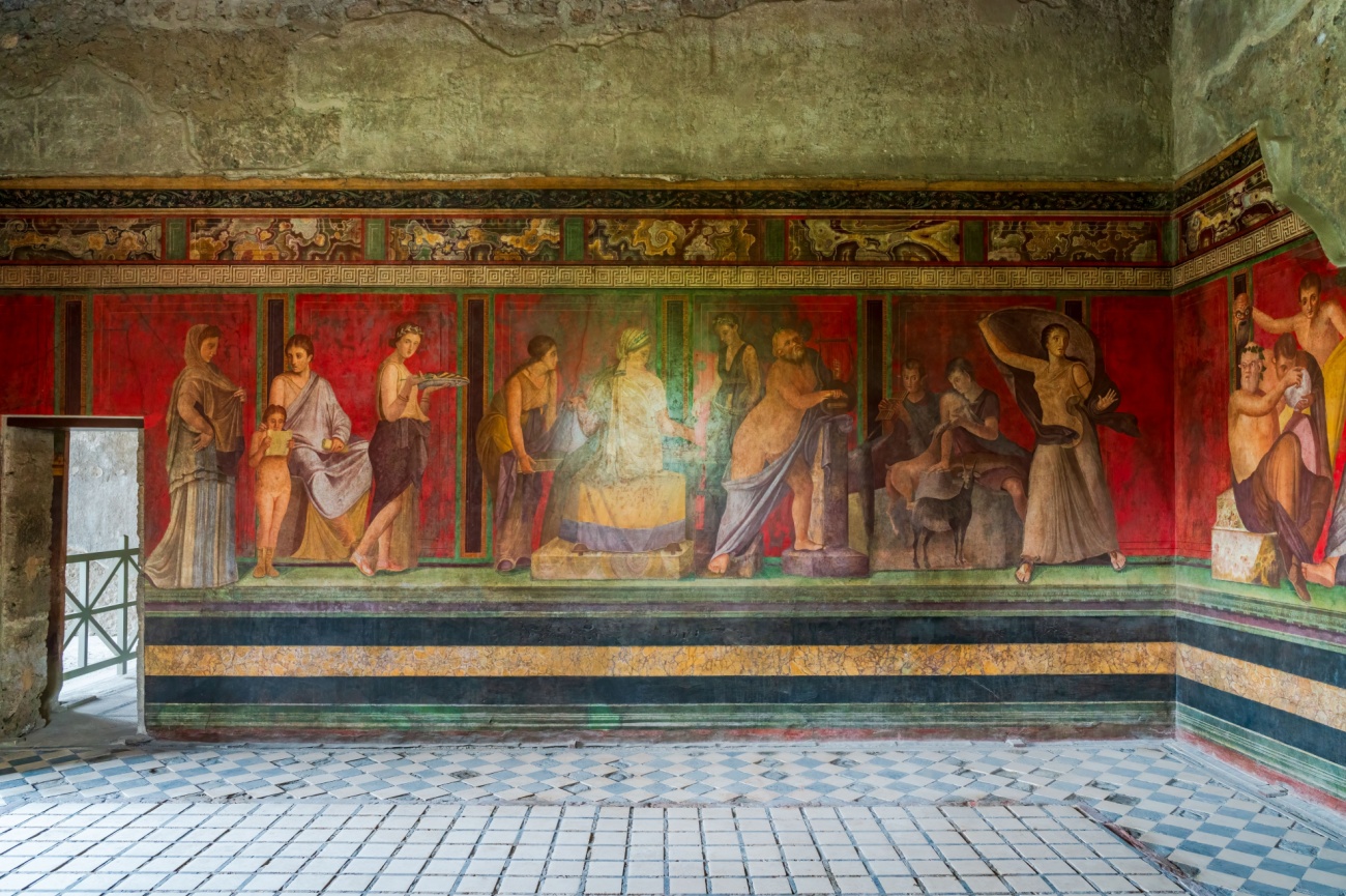 Pompeii is also home to one of the oldest surviving Roman amphitheatres, able to hold 20,000 spectators for gladiatorial contests. The aptly named Villa of the Mysteries features elaborate wall frescoes depicting enigmatic rituals. Another grand residence, The House of the Faun, was once the home of a wealthy military ruler and is particularly noteworthy for its exquisite mosaic floors, including the Alexander Mosaic.