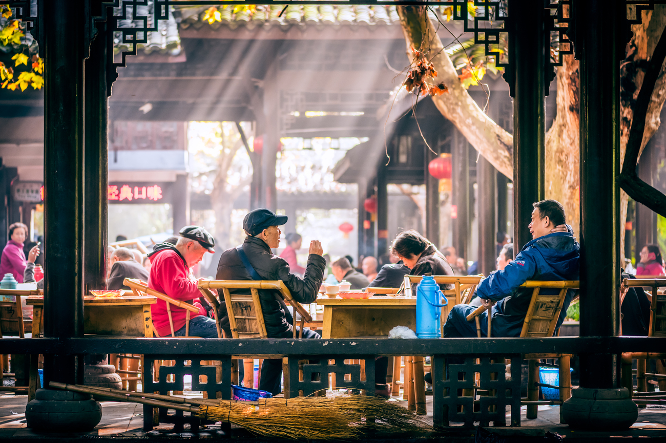 A continuación, vuelve al centro de la ciudad y baja el ritmo en el Parque del Pueblo, el parque público más antiguo de Chengdu. Inaugurado en 1911, es el lugar donde los locales vienen a tomar té, socializar y, simplemente, dejar pasar el día. Siéntate en la histórica Casa de Té Heming, donde podrás acomodarte en sillas de bambú, pedir una taza de té Gaiwan y ver cómo transcurre la vida cotidiana de Chengdu a tu alrededor. Si tienes curiosidad, incluso puedes probar una sesión tradicional de limpieza de oídos realizada por expertos “maestros del oído” con herramientas especializadas.