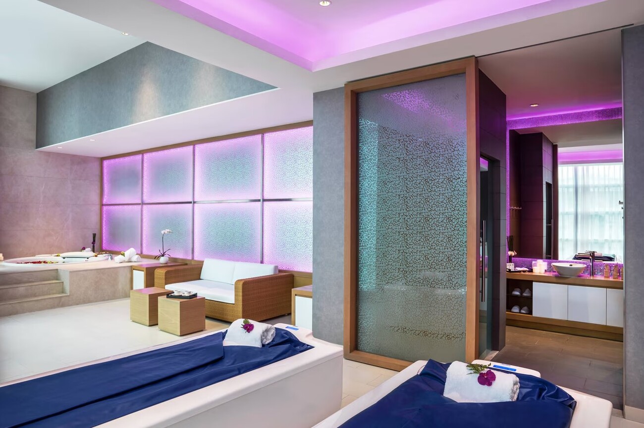 La pieza central del edificio es un enorme parque acuático cubierto, con playa artificial, piscinas de olas, toboganes y una pantalla LED gigantesca que proyecta amaneceres y atardeceres realistas. También encontrarás más de 200 tiendas, desde firmas de lujo como Gucci y Prada hasta marcas conocidas como Zara y H&M. Incluso hay una pista de patinaje sobre hielo de tamaño olímpico, una sala IMAX, recreativas y hasta una atracción de barco pirata. Por la noche, sal a la Plaza Central y disfruta del espectáculo de fuentes alrededor de las 19:30.