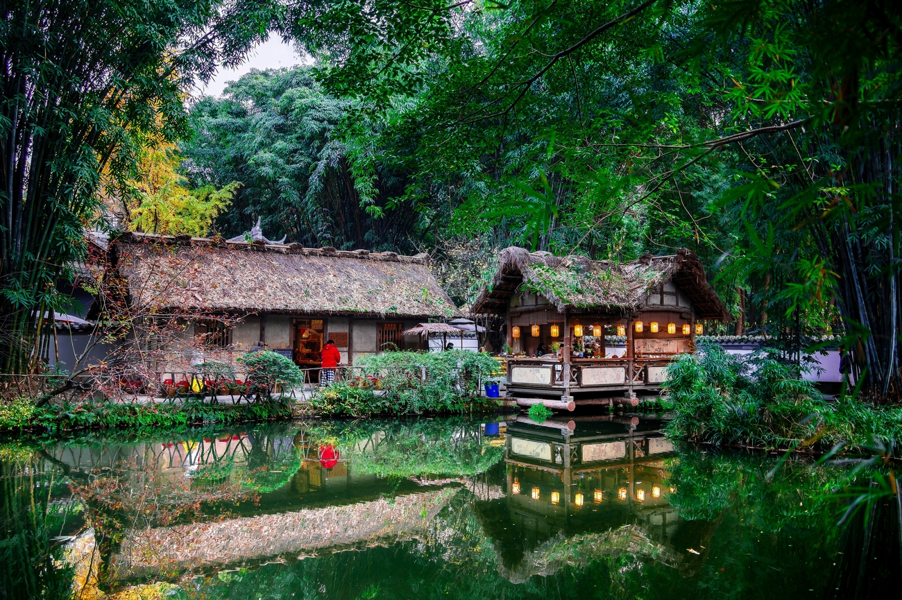 Después, baja el ritmo en la Cabaña de Paja de Du Fu, un parque y museo dedicados a Du Fu, el poeta más venerado de la dinastía Tang, a menudo llamado el «Sabio Poeta». Este jardín literato, frondoso y sereno, está lleno de bambúes, arroyos y elegante arquitectura de estilo Tang y Qing. Du Fu vivió aquí durante cuatro años (759–763 d. C.) y escribió más de 240 de sus poemas más influyentes en ese periodo. Mientras paseas por el recinto, verás una reconstrucción cuidada de su casa de techo de paja, junto con el Pabellón de la Estela de Shaoling, la Sala de la Poesía Histórica, el sendero Huajing bordeado de flores, la Pagoda Wanfo y ruinas conservadas de la dinastía Tang.