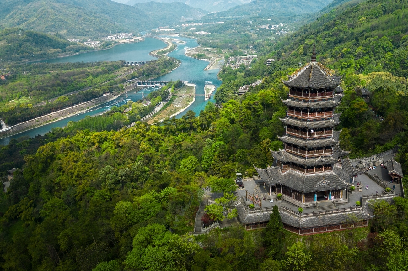 Recorre el Puente Colgante de Anlan, también conocido como el «Puente de los Enamorados», para disfrutar de vistas espectaculares de los canales interior y exterior del río. Después, sube hasta la Torre Qinyan, el mejor punto para ver desde arriba cómo funciona todo el sistema. Desde aquí se entiende con claridad el trazado completo y los tres proyectos clave que lo hicieron posible: el Yuzui, con forma de boca de pez, que divide el río, el aliviadero Feishayan, que libera el exceso de agua, y el canal Baopingkou, que corta la montaña. Verlo de cerca es contemplar uno de los logros de ingeniería histórica más impresionantes.