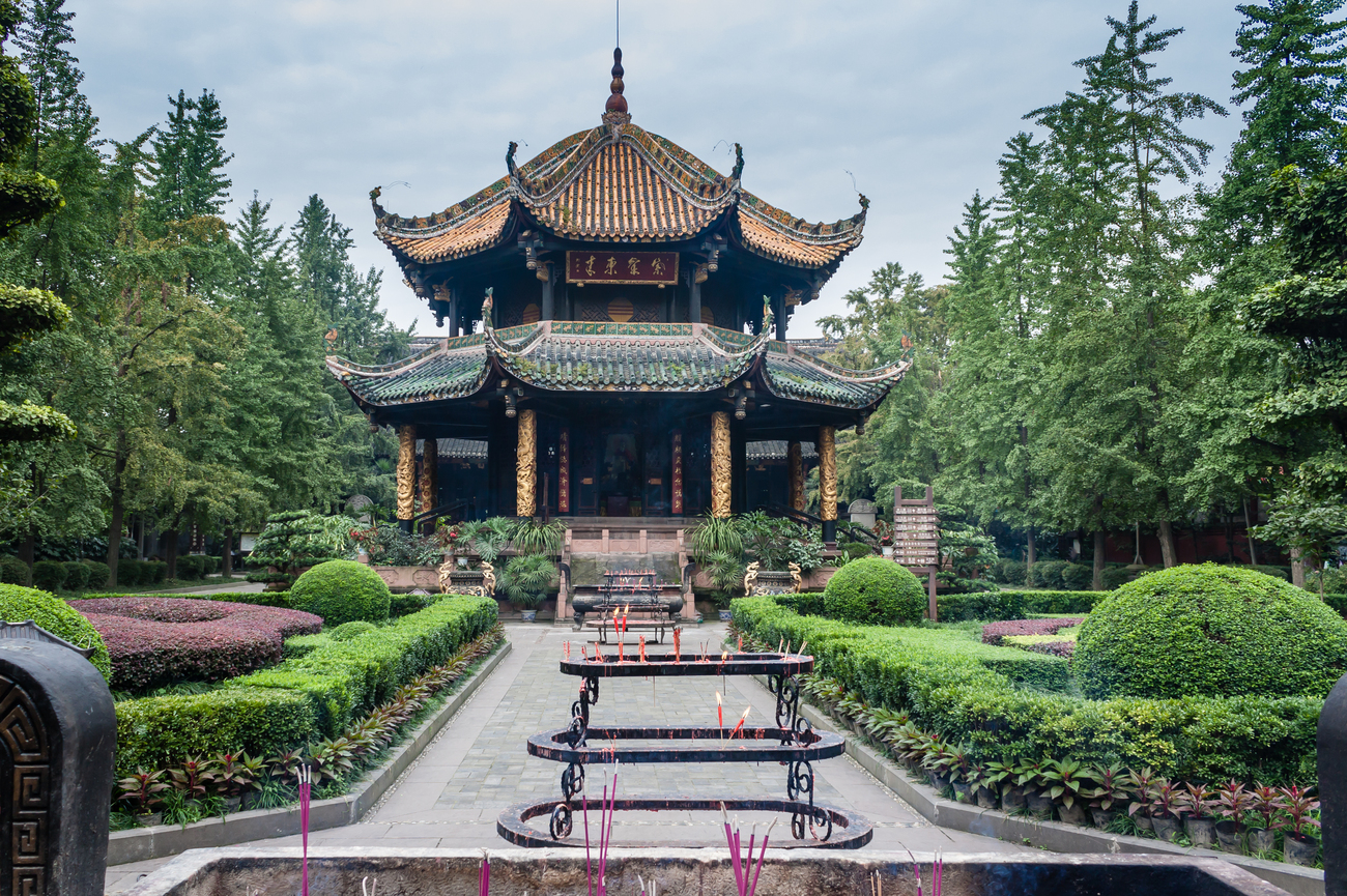 A continuación, dirígete al Monasterio de Wenshu Yuan, el templo budista zen más grande y mejor conservado de Chengdu. Sus orígenes se remontan a la dinastía Sui, y este complejo de 13 acres se siente como un «bosque urbano», con salas silenciosas, jardines sombreados y arquitectura tradicional de madera.