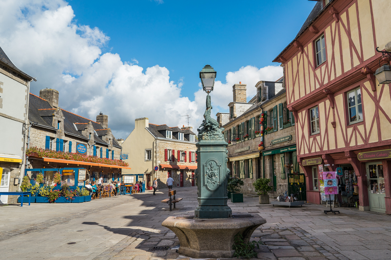 A continuación, nos dirigiremos al pintoresco lugar de Saint-Guénolé, con sus antiguas casas, tiendas, cafeterías y restaurantes de piedra y entramados de madera. Esta pintoresca plaza se encuentra en el centro de Ville Close y es el lugar perfecto para disfrutar del ambiente del casco antiguo mientras buscas regalos o te relajas con un café en la terraza.
