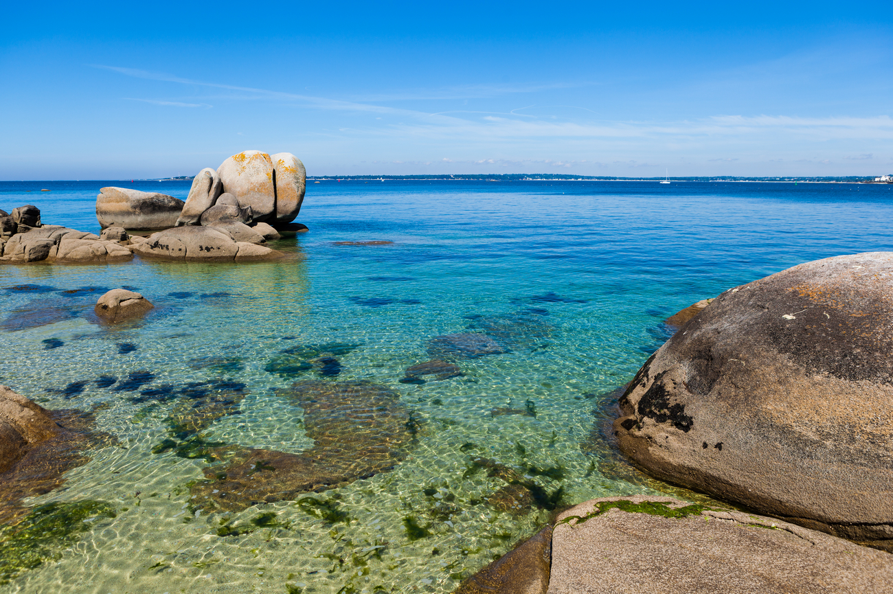 La hermosa y pequeña playa de Plage du Porzou está a solo un par de kilómetros al sur del centro de la ciudad y ofrece un tramo de arena perfecto para tomar el sol, darse un chapuzón y explorar las piscinas de roca en busca de vida marina.