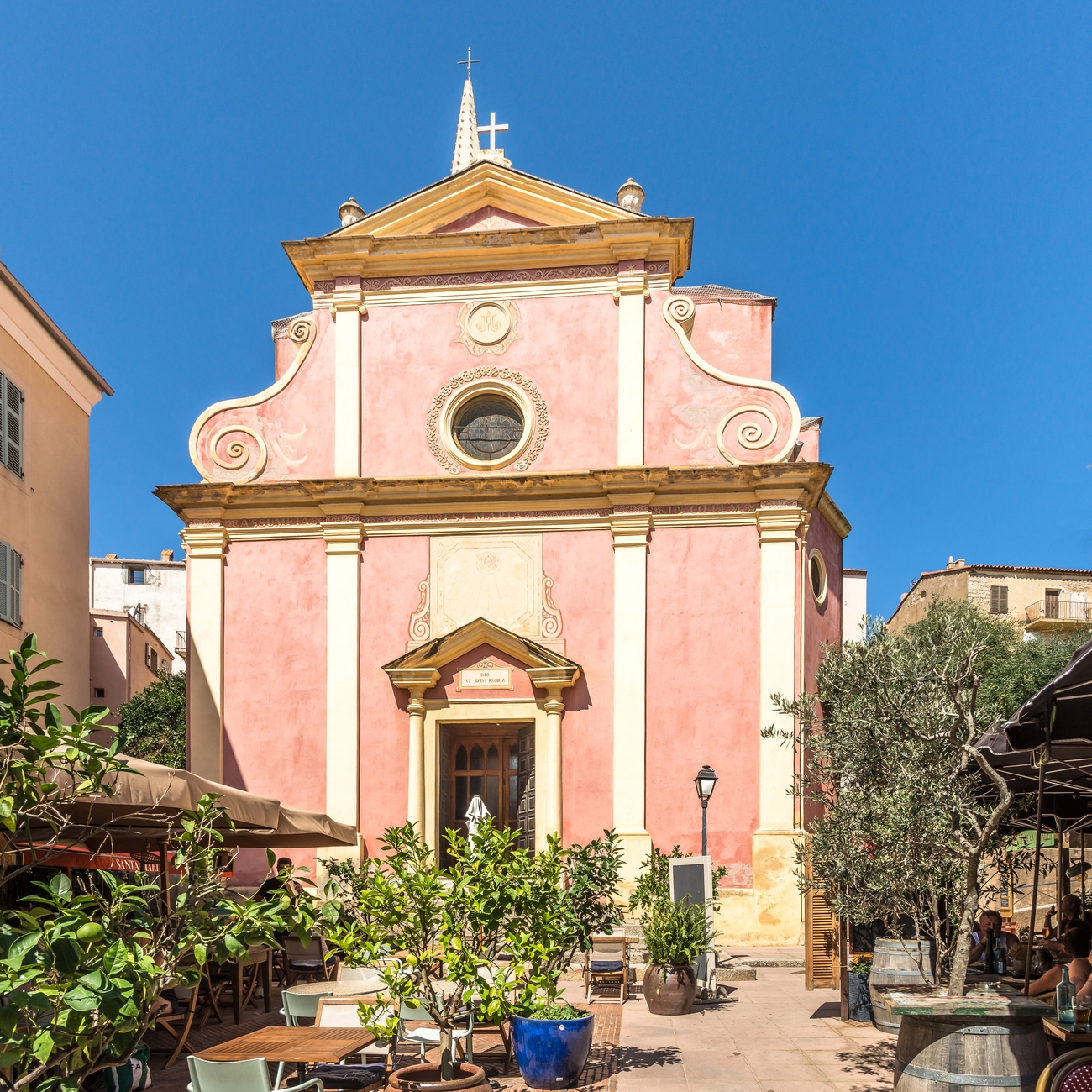 Depuis la Maison Bonaparte, il suffit de cinq minutes de marche pour atteindre le cœur battant du Vieux Ajaccio. C’est le genre de promenade où l’histoire se frotte naturellement à la vie quotidienne. Un instant, vous passez devant des façades pastel ornées de linge séchant comme des bannières de victoire ordinaire, et l’instant d’après, vous vous retrouvez face à des églises baroques conçues pour éblouir.