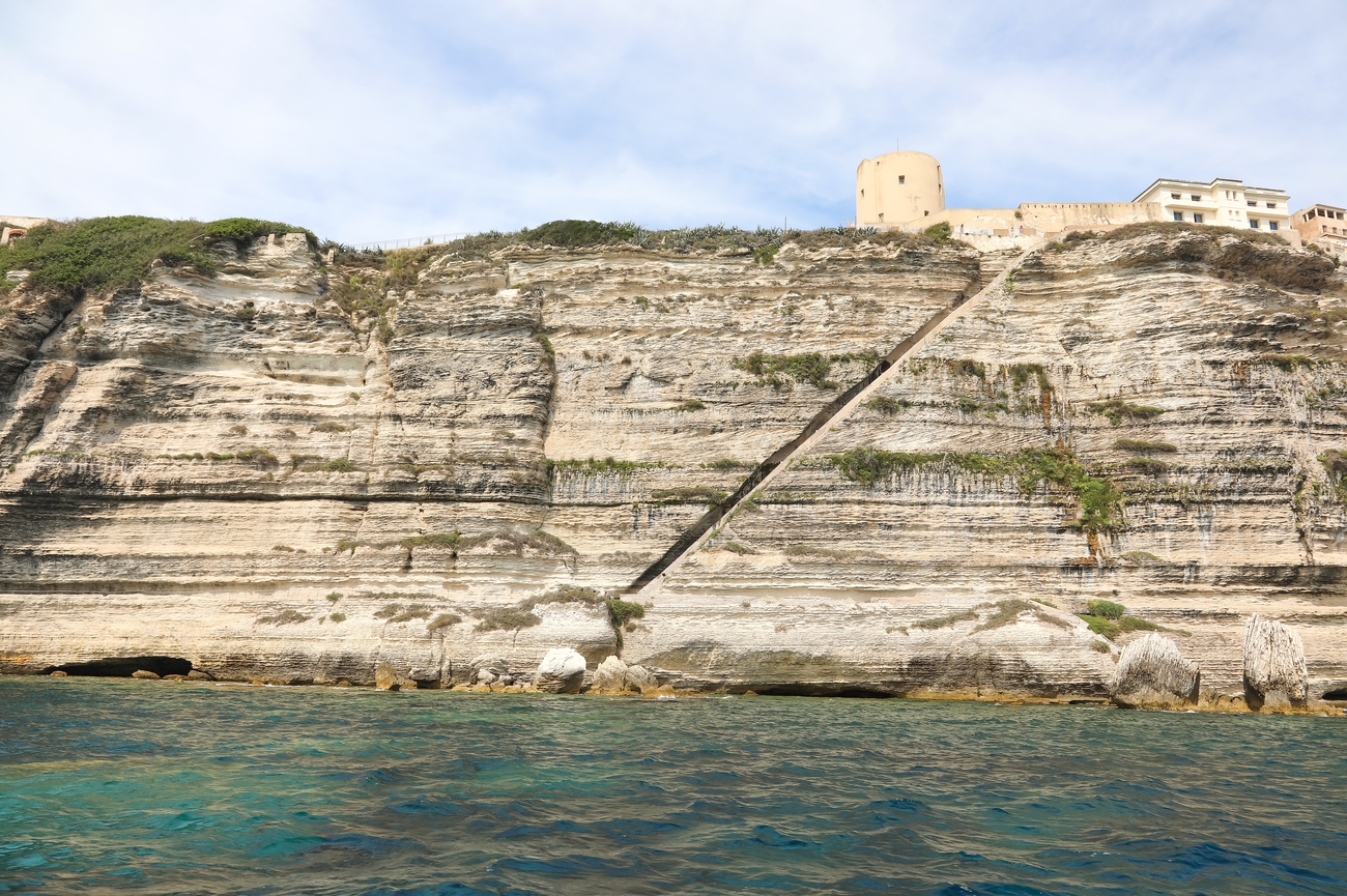 Descendre cet escalier, c’est accepter une invitation à longer le visage calcaire de Bonifacio lui-même, comme si la falaise avait voulu imiter une gravure d’Escher. Chaque marche vous rapproche de la mer, et chaque pause — car oui, vous allez faire des pauses — dévoile une vue qui fera surchauffer l’appareil photo de votre téléphone.