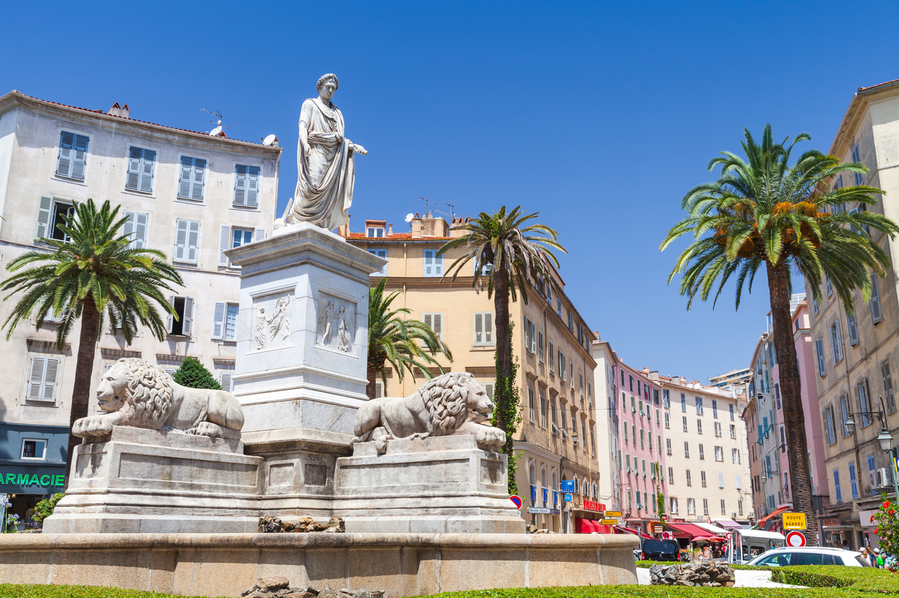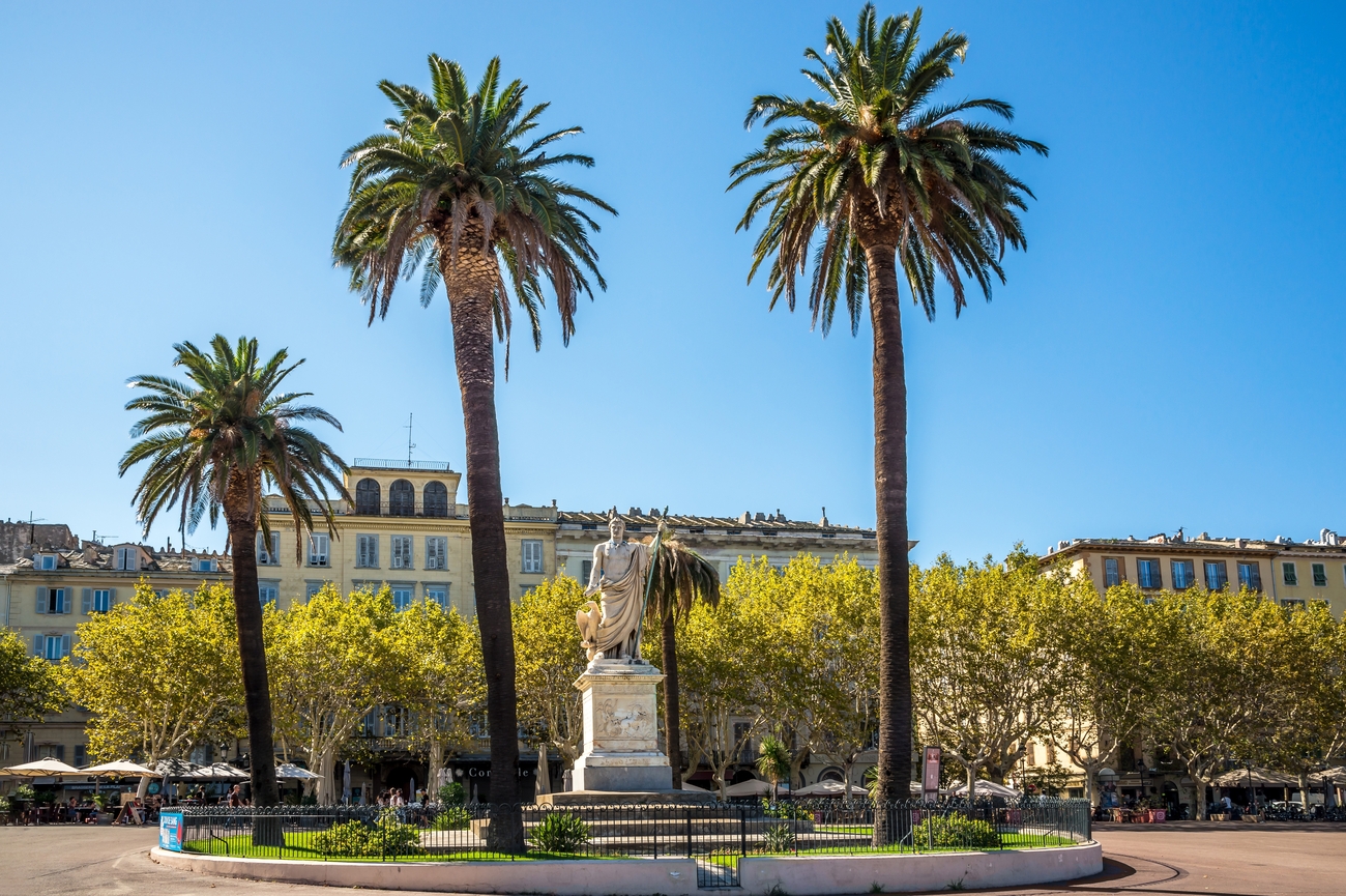 Après 25 minutes de route pour revenir à Ajaccio, vous vous retrouvez au cœur battant de la ville : la Place Foch. La place est bordée de palmiers, ponctuée de fontaines et, bien sûr, dominée par une statue de Napoléon dans sa meilleure pose d’« empereur romain ». Subtilité ? Pas vraiment. Mais c’est précisément ce qui fait son charme. Le soir venu, l’atmosphère devient électrique. Les cafés débordent sur la place, la musique résonne des coins de rue et l’air pétille de conversations animées. Pour les voyageurs en quête de raffinement, une tournée d’aperitivi sur mesure peut être organisée, avec vins corses sélectionnés par un sommelier et planches de charcuterie servies directement à votre table.
