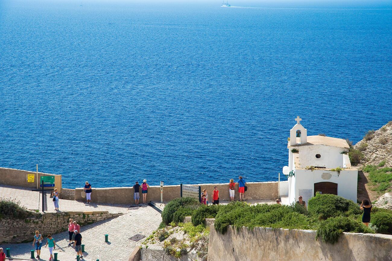 Depuis la marina, une montée de dix minutes vous mène à la Montée Saint-Roch. Chaque pas vous hisse un peu plus au-dessus du port de Bonifacio, jusqu’à ce que la ville entière se déroule à vos pieds comme une maquette. Tout en haut, la chapelle Saint-Roch veille en silence, témoin de la résilience de la cité face aux pestes, aux sièges et aux tempêtes au fil des siècles.