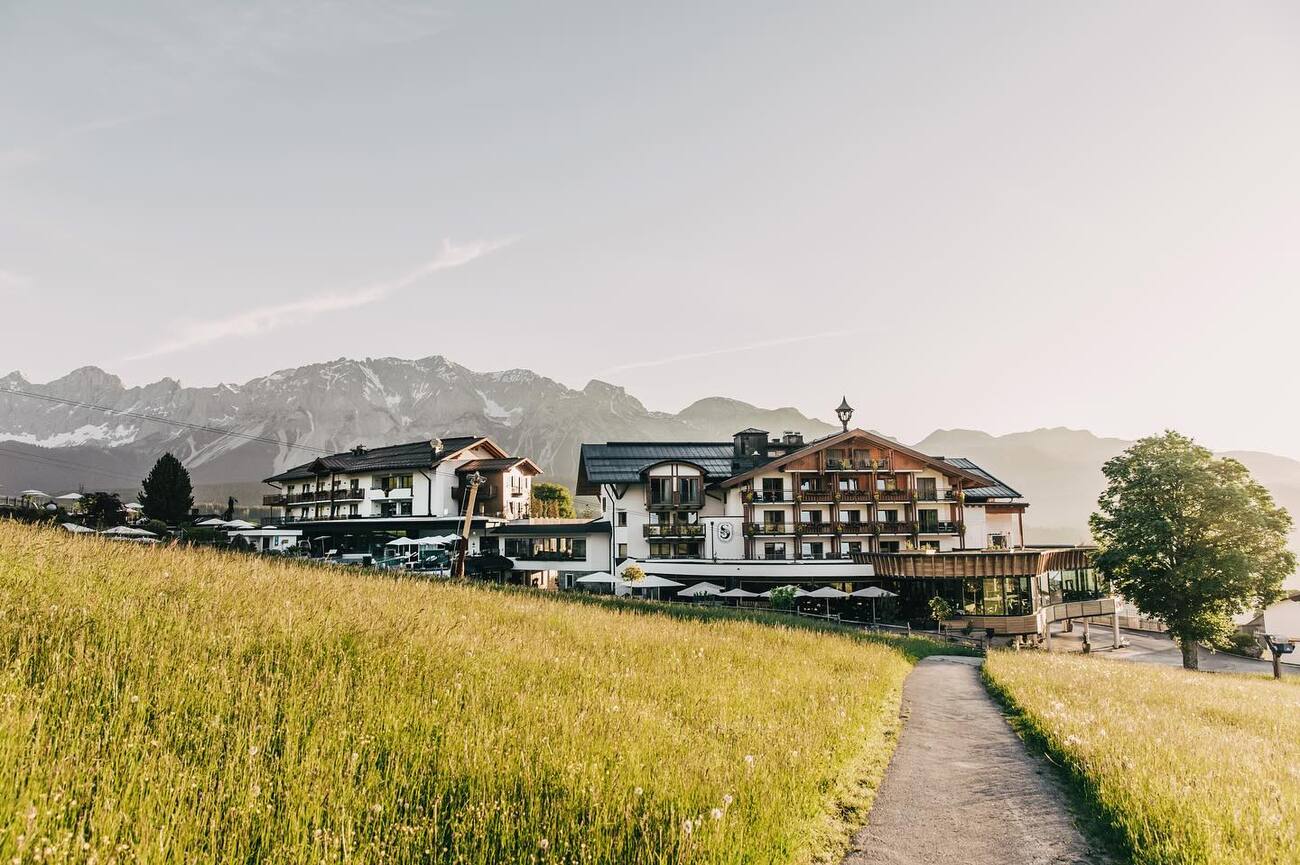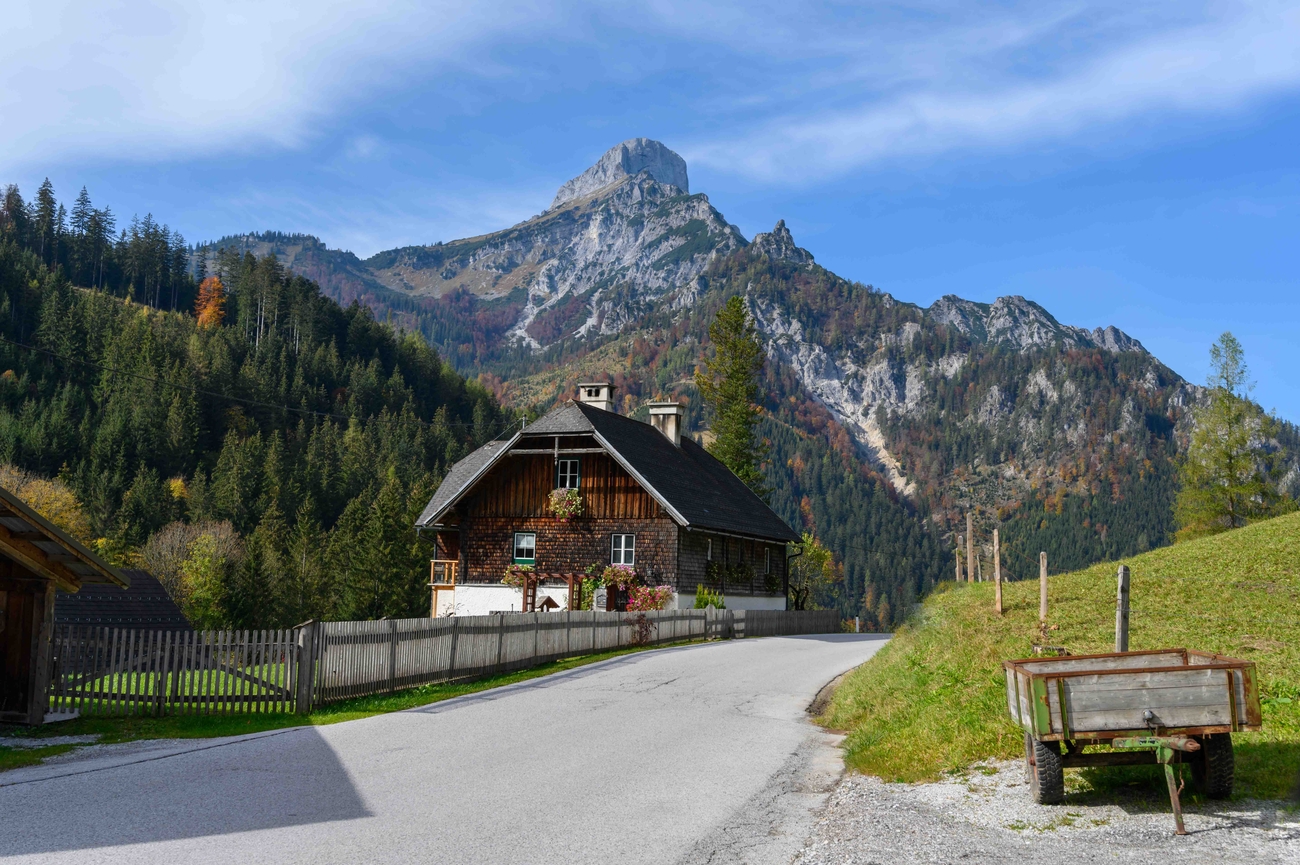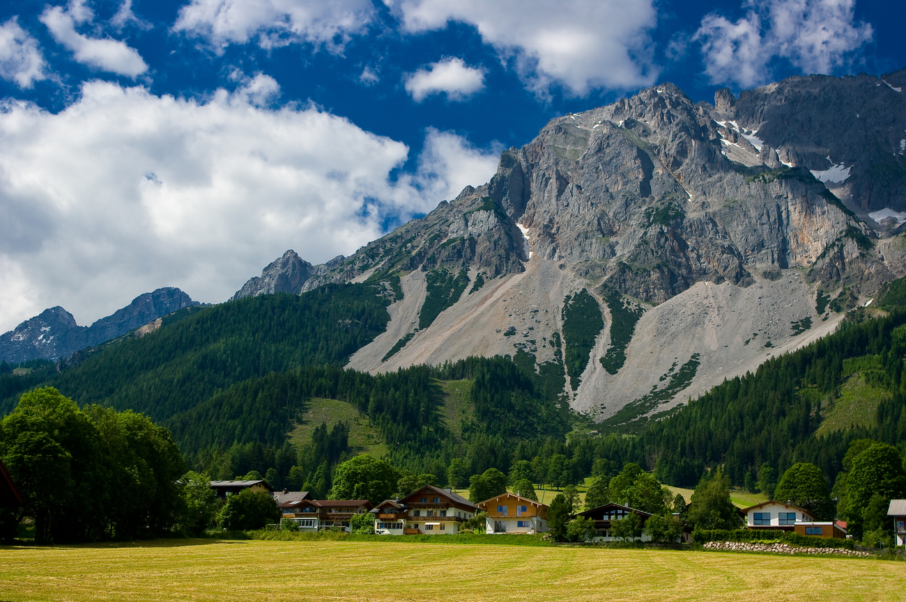 Ahora te diriges a un pueblo que parece el epítome de la vida de montaña en Estiria. Las praderas se extienden amplias, las casas alpinas tradicionales salpican el paisaje y las imponentes cumbres del Dachstein lo vigilan todo como centinelas silenciosos. El pueblo es famoso por sus panorámicas espectaculares, el esquí en invierno y el senderismo en verano, convirtiéndolo en un patio de recreo alpino durante todo el año.