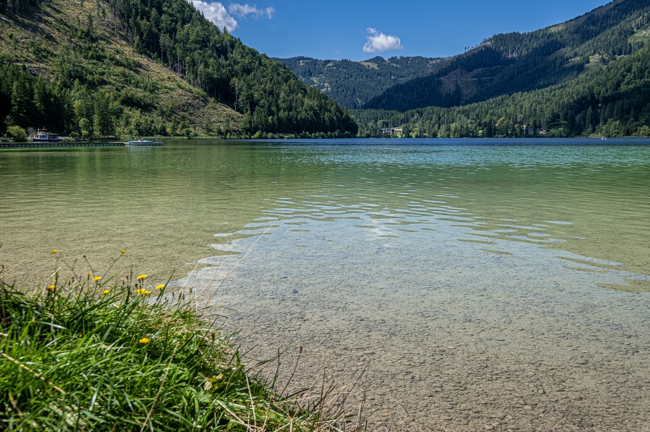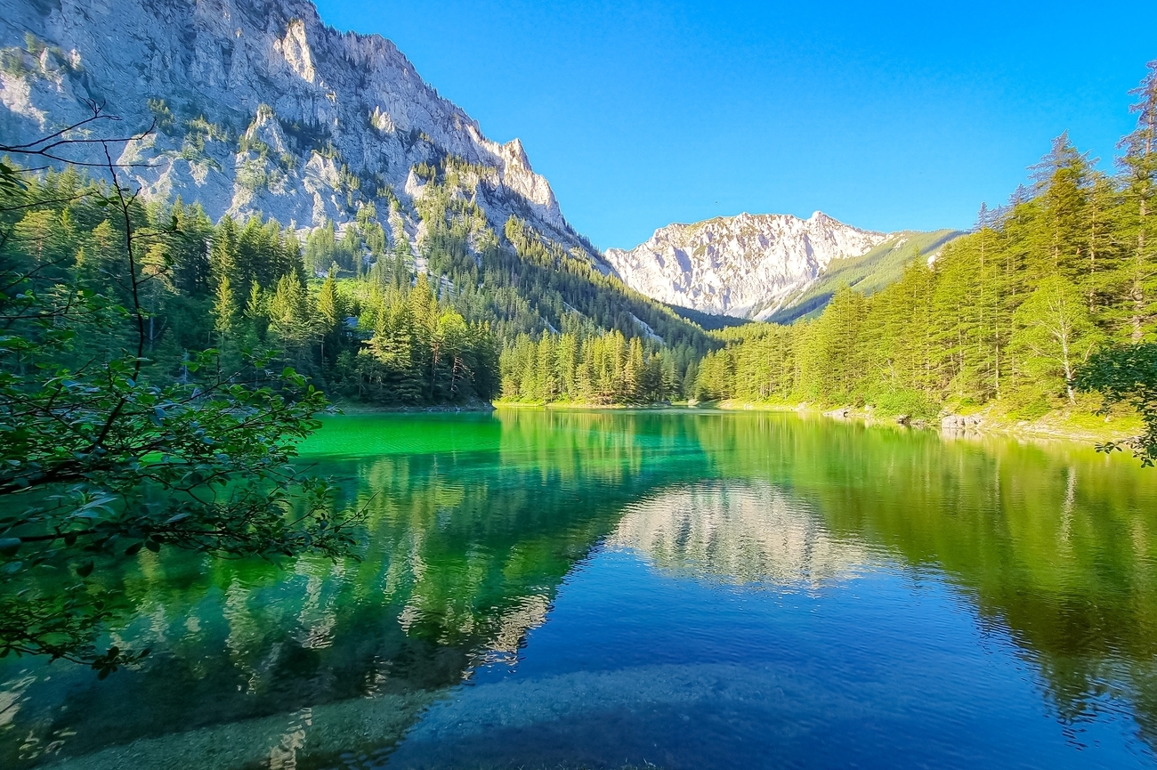 El Grüner See, o Lago Verde, es una maravilla estacional. Alimentado por el deshielo de las montañas cercanas, el nivel del agua sube de forma espectacular a finales de la primavera y comienzos del verano, cubriendo senderos, bancos y puentes y creando un paisaje submarino casi de otro mundo. Senderistas, buceadores y fotógrafos se sienten atraídos por sus aguas cristalinas, que parecen darle la vuelta a las montañas. En invierno, el lago retrocede y deja al descubierto praderas y caminos que anticipan la transformación dramática vivida solo unos meses antes.