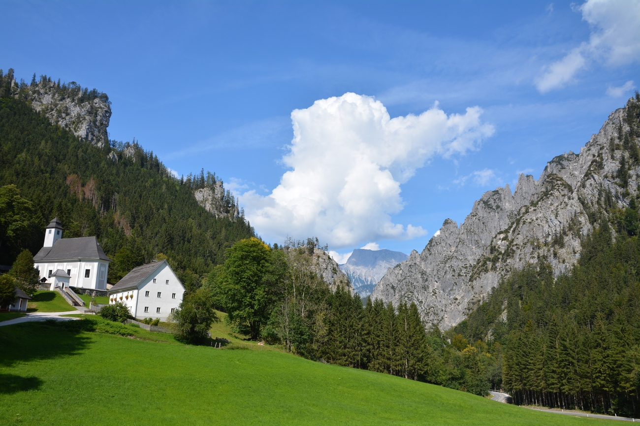 Desde el corazón del Parque Nacional Gesäuse, la carretera se desliza suavemente hacia el este durante unos 20 minutos en coche. Cambiarás los desfiladeros rugientes por praderas alpinas abiertas y picos que parecen sacados de un cuento.