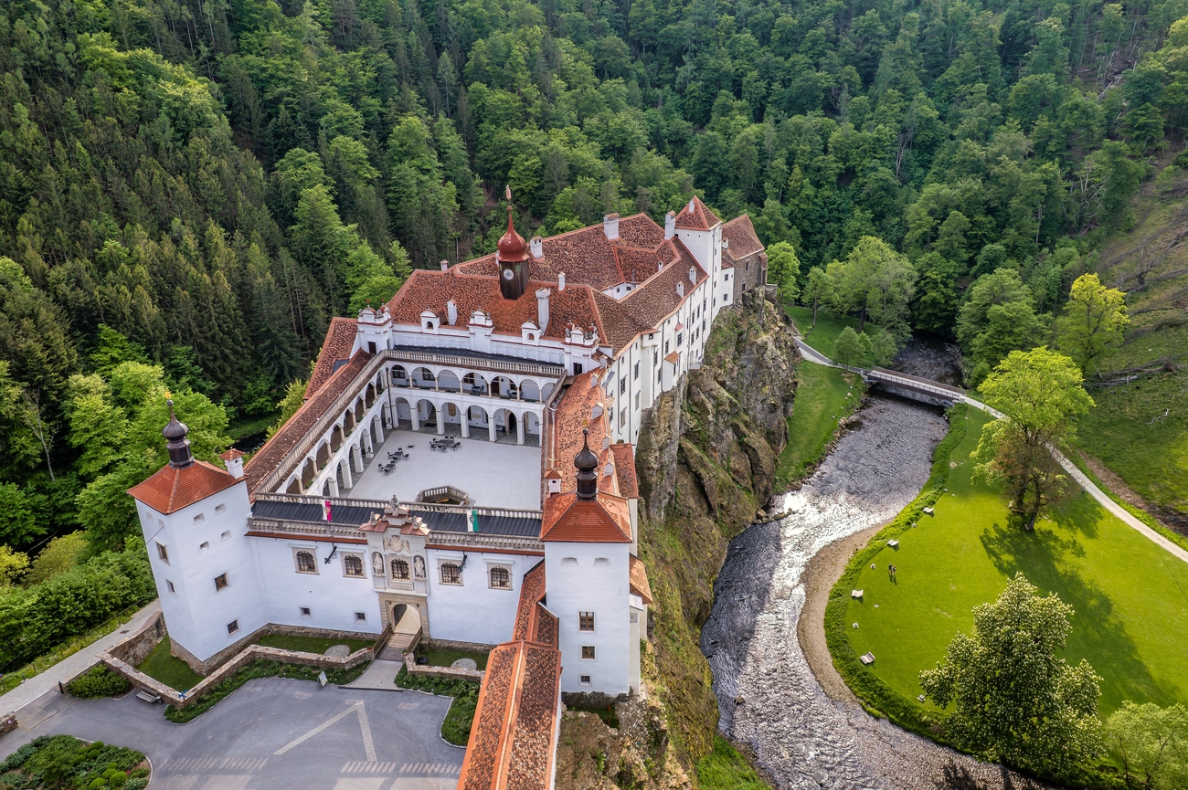 Schloss Herberstein no es de esos castillos congelados en el tiempo. Sus raíces se remontan a 1216. A lo largo de los siglos, pasó de ser una fortaleza medieval a una residencia renacentista y barroca. Hoy se presenta con capas de arquitectura: una torre del homenaje gótica, un ala renacentista y el patio Florentinerhof de época barroca, que enmarca vistas amplias sobre valles y colinas. Pero la magia no está solo en la piedra y las torres. Schloss Herberstein también es conocido como el “Castillo Jardín”. Sus jardines históricos, con parterres geométricos, senderos florales perfumados y un pabellón romántico, datan del siglo XVI y han sido restaurados con cariño en los últimos años.