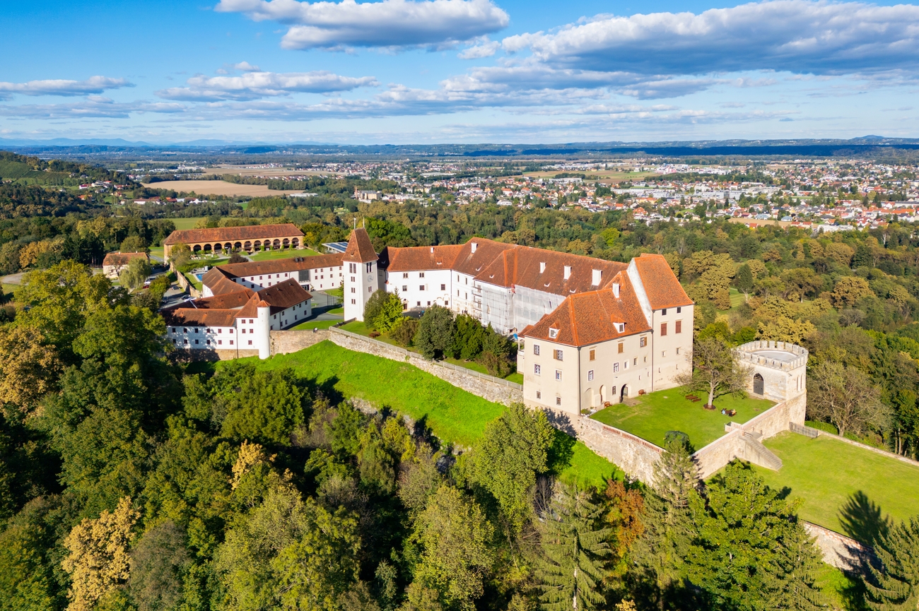 Schloss Kapfenstein se remonta al siglo XI y fue originalmente una fortaleza medieval que protegía las rutas comerciales. Con el paso del tiempo, se transformó en una residencia y bastión cultural, conservando sus imponentes torres y murallas fortificadas mientras incorporaba la elegancia del estilo renacentista. En el interior, las visitas guiadas desvelan el pasado lleno de historias del castillo, desde familias feudales e intrigas aristocráticas hasta su papel en la defensa regional. Al recorrer las murallas, la mirada se pierde entre viñedos, colinas boscosas y cumbres lejanas.