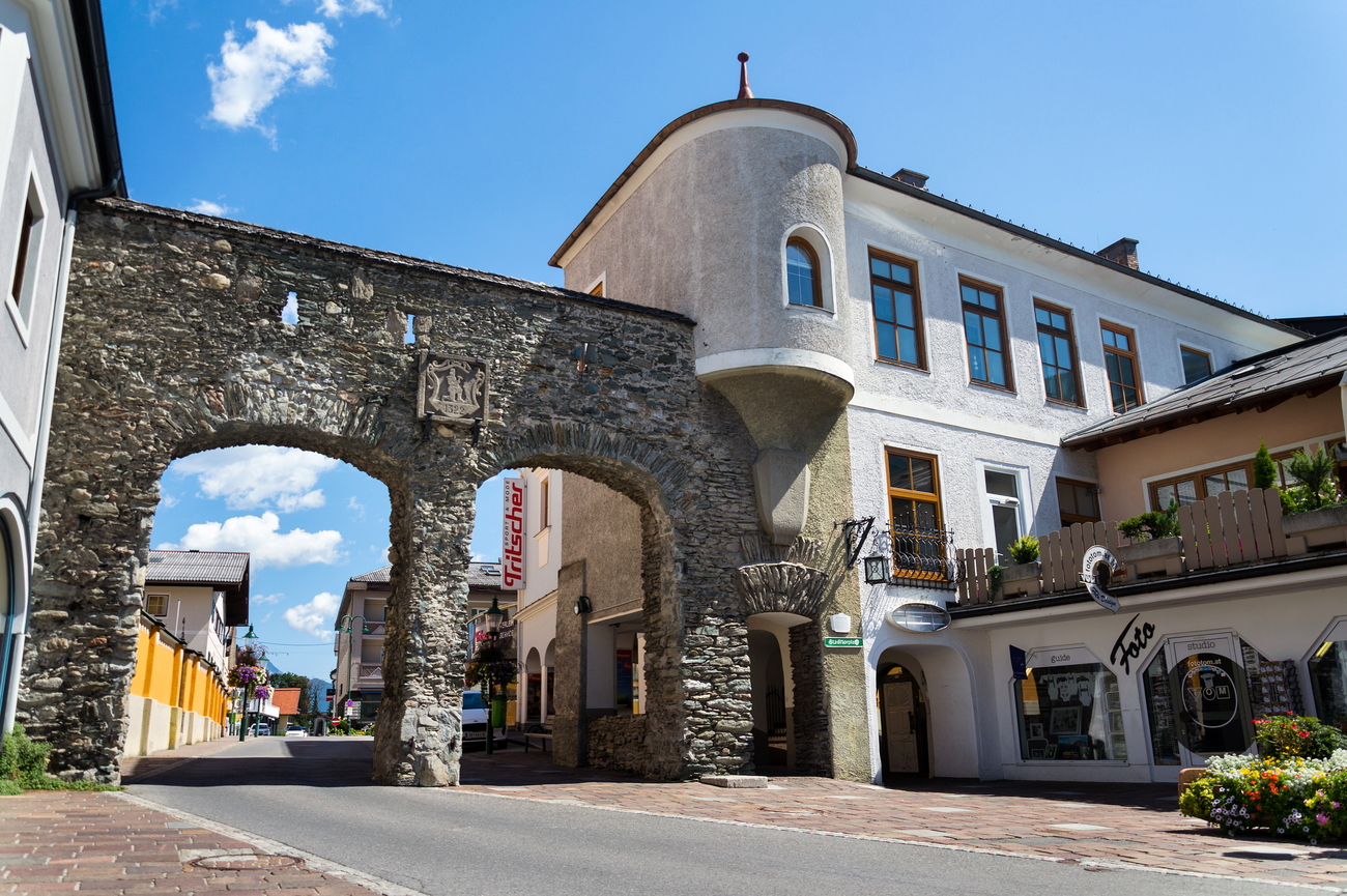El Stadttor, construido en el siglo XVI, fue la entrada principal de la ciudad, controlando el acceso de comerciantes y viajeros mientras protegía Schladming de los riesgos alpinos. Sus gruesos muros de piedra, el paso abovedado y sus discretos detalles decorativos revelan una historia de defensa práctica con un estilo sobrio. Más allá de la puerta, calles peatonales con fachadas entramadas de madera y callejones empedrados muestran la evolución de Schladming, de puesto de comercio de montaña a moderno centro de aventura al aire libre.