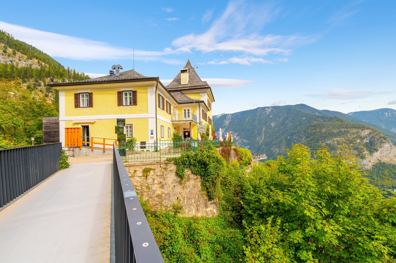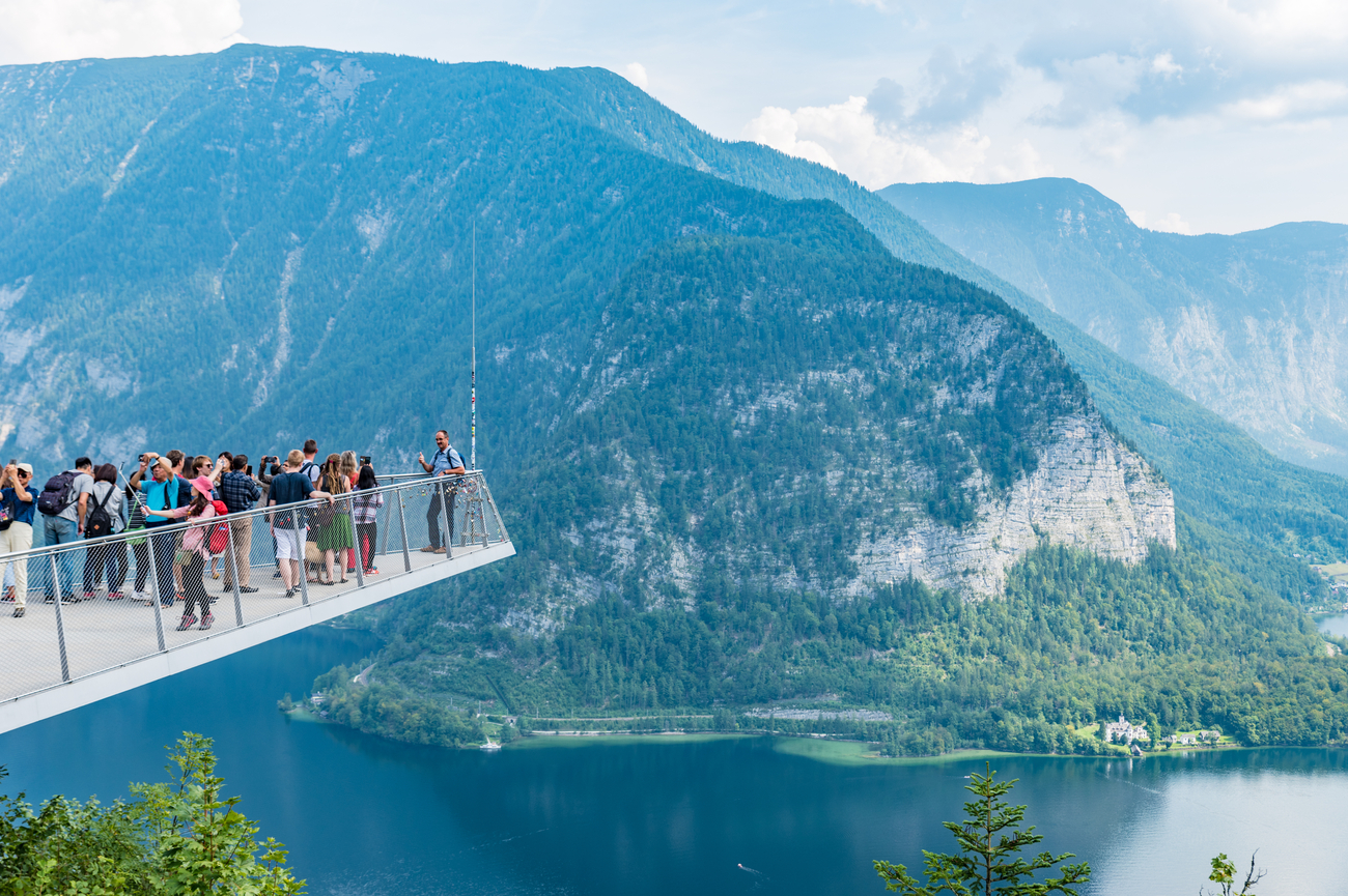 Después de saltar de iglesia en iglesia por el pueblo, toca subir de nivel, literalmente. Enfréntate a una breve subida o toma el funicular hasta el Hallstatt Skywalk, situado a 360 metros por encima del pueblo.