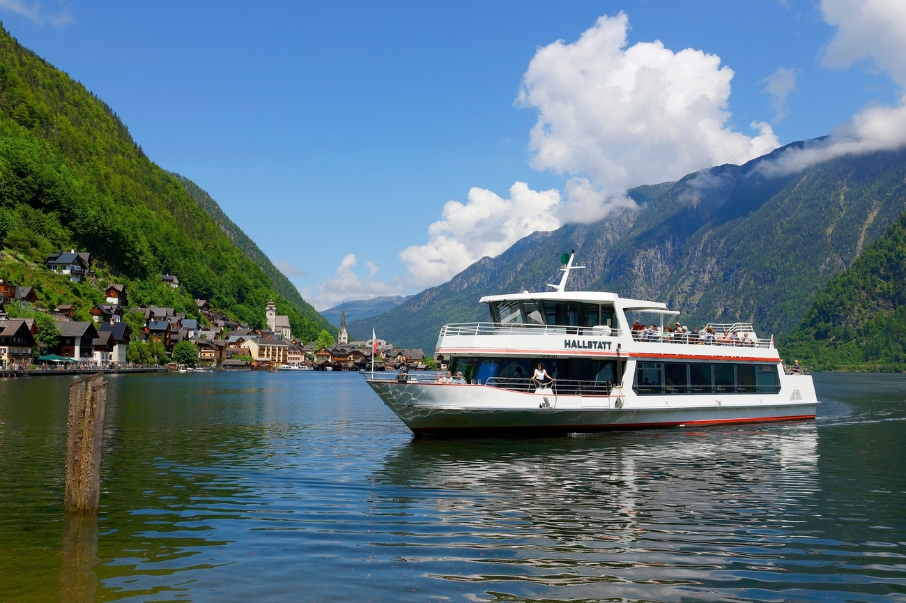 Y si te apetece una versión más indulgente, desde el propio paseo salen excursiones privadas en barco eléctrico, deslizándose en silencio por el lago mientras un guía repasa el legado de siglos de comercio de sal y las historias del pueblo. Este paseo junto al agua será el broche final del Día 1, cerrando una jornada completa de historia, cultura y belleza en Hallstatt antes de que la tarde se asiente sobre el pueblo.