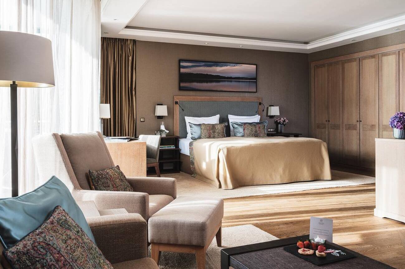 From the Seepromenade, it’s an easy 3–5 minute walk inland, the modern glass-and-stone building rises subtly against the alpine backdrop, polished but never over-the-top. You move from morning calm to quiet glamour in just a few steps.