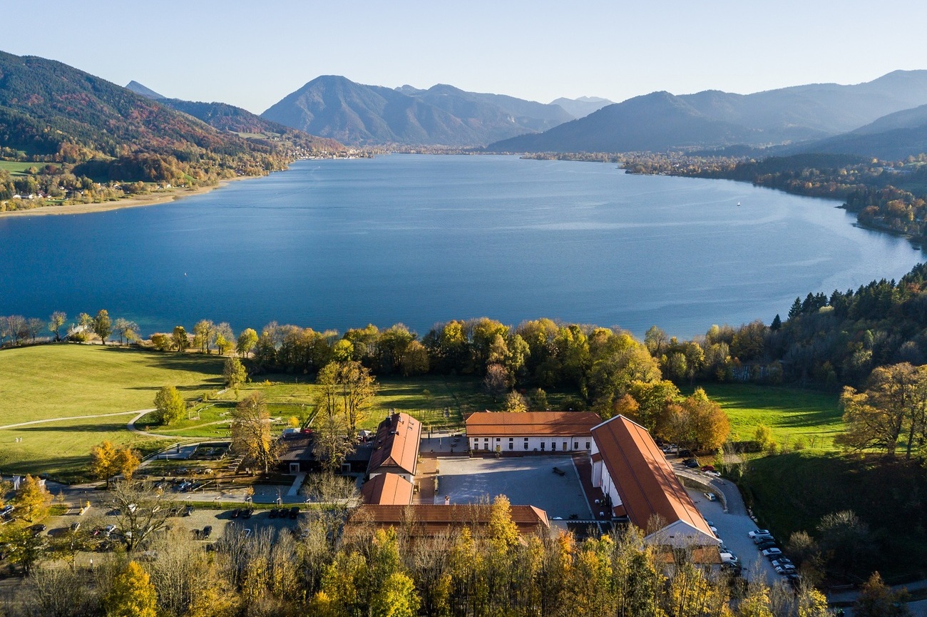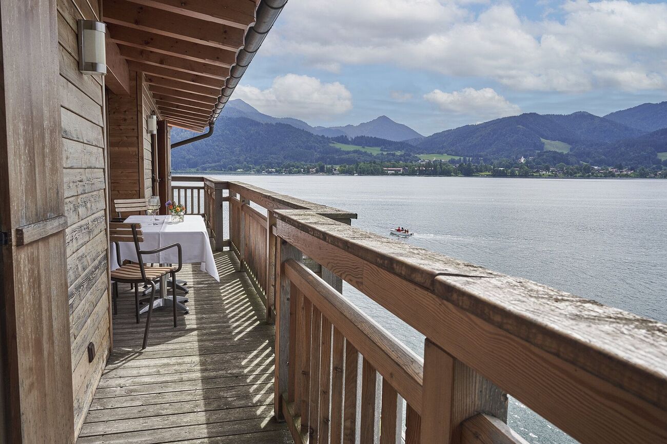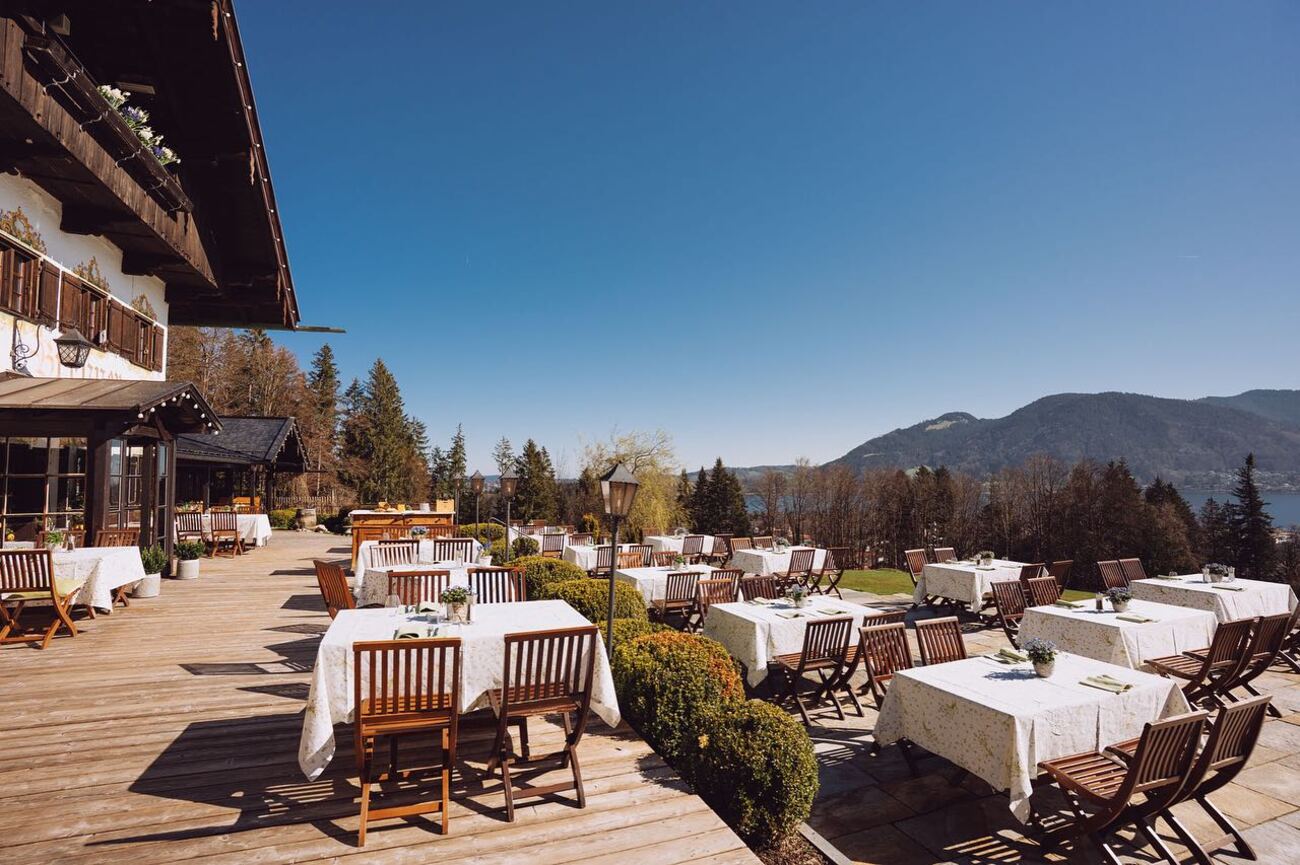 Access to the interior is limited to events and conferences, but the real reward is outside. The panoramic terrace offers one of the most refined views over Lake Tegernsee. You stand there, slightly above it all, watching the valley settle.